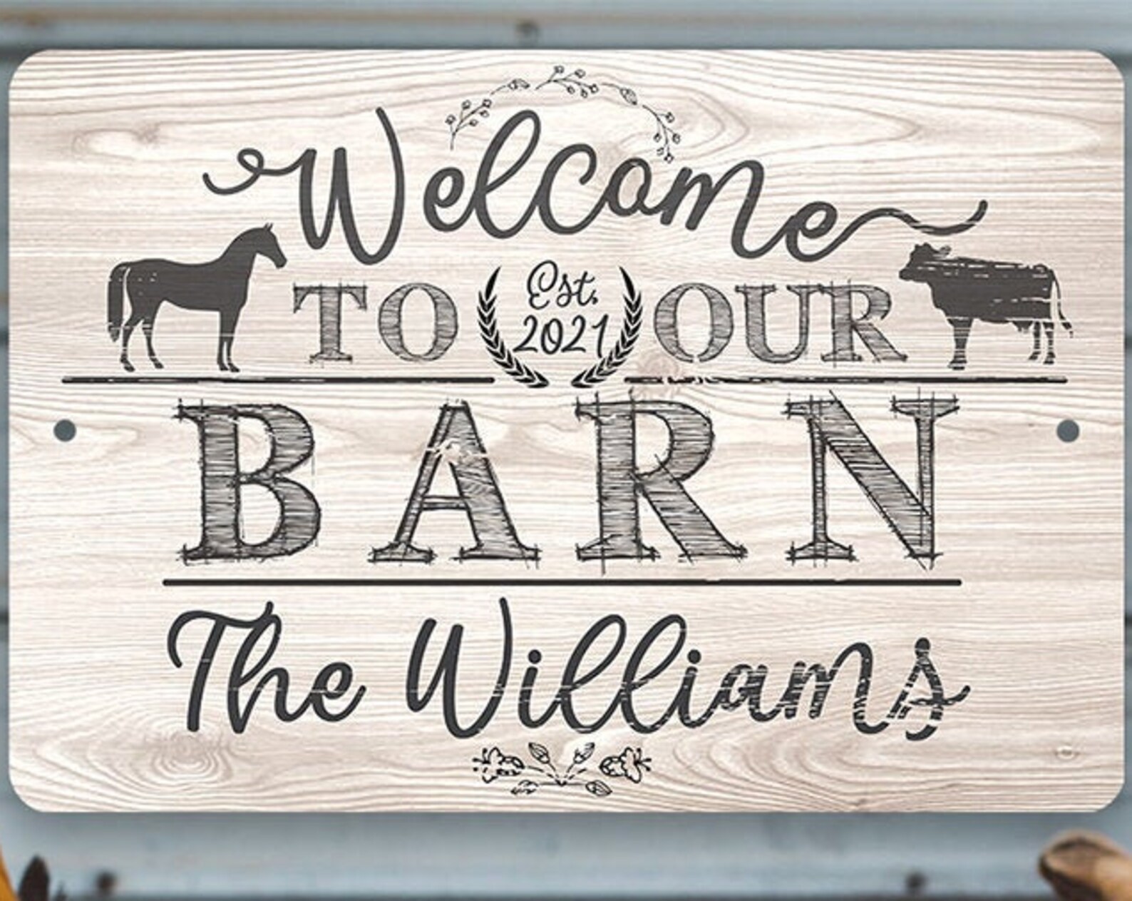 Personalized Welcome To Our Barn 8" x 12" or 12" x 18" Aluminum Tin Awesome Metal Poster