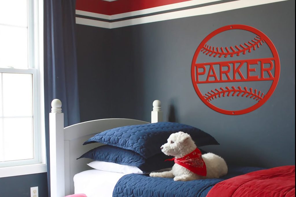 This Personalized Baseball Name Metal Sign is the perfect decor for any kids room. Also makes a great gift for the baseball lovers in your life. Our 12" through 28" signs are made from 16 gauge steel, 30" through 36" signs are made from 14 gauge steel with a powder coated finish for a long lasting sign indoors or outdoors.