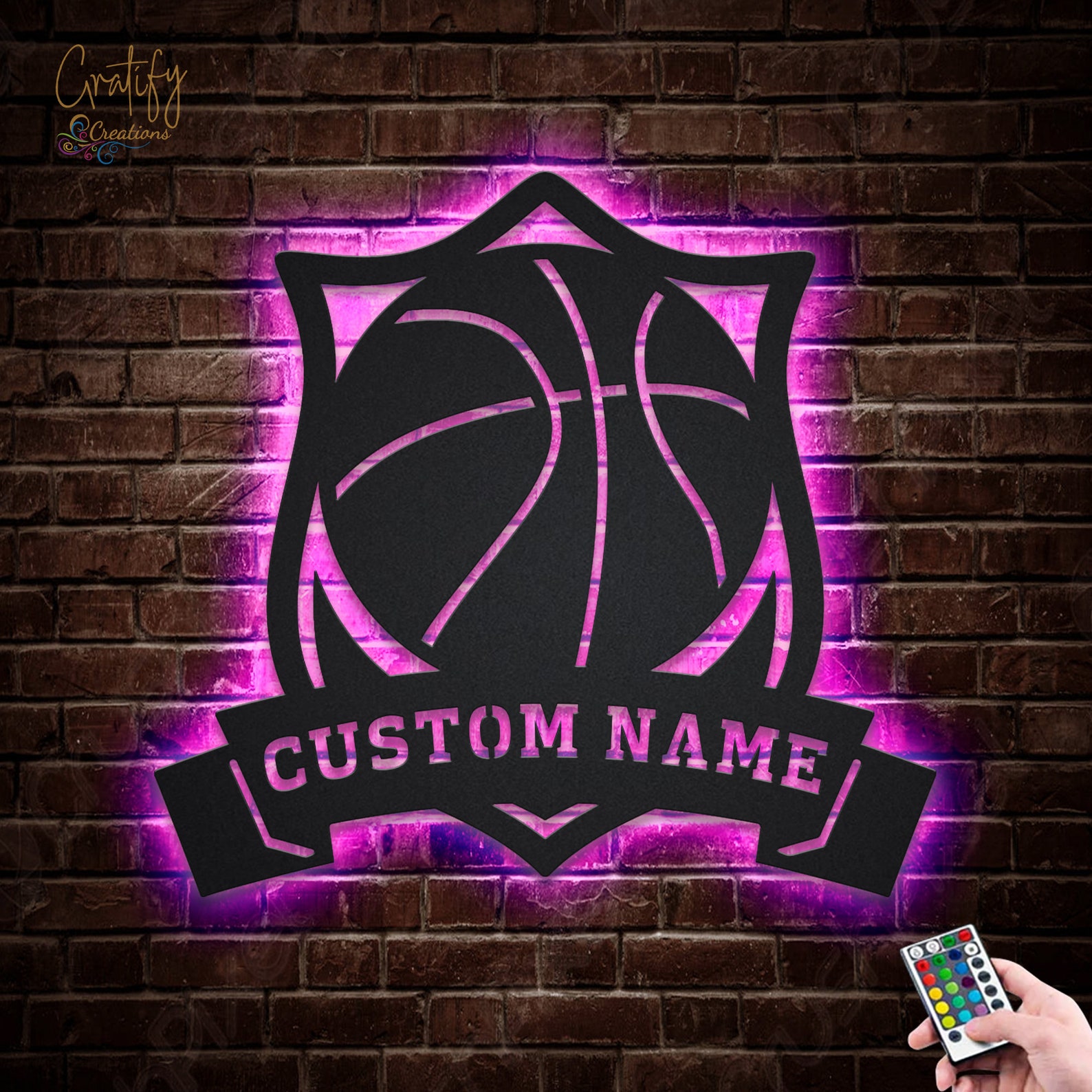 Showcase your love for basketball with this stunning custom basketball monogram metal sign with LED lights. This personalized basketball metal wall art is the perfect way to add a touch of personality and style to your home or office. The LED lights make it even more eye-catching, and it9;s sure to be a conversation starter among your friends and family.