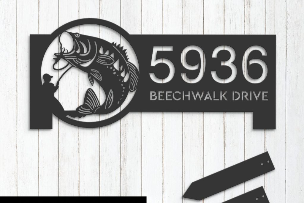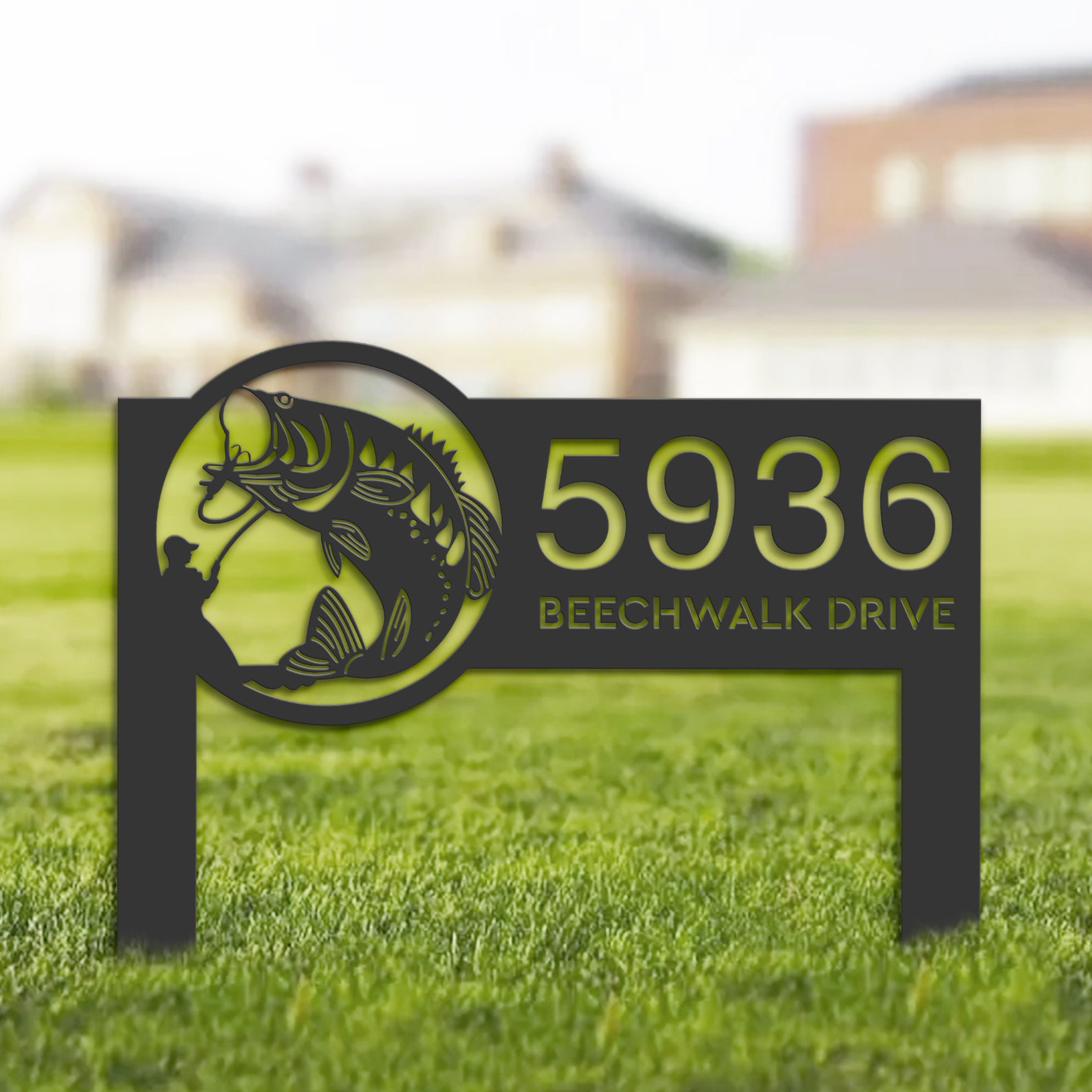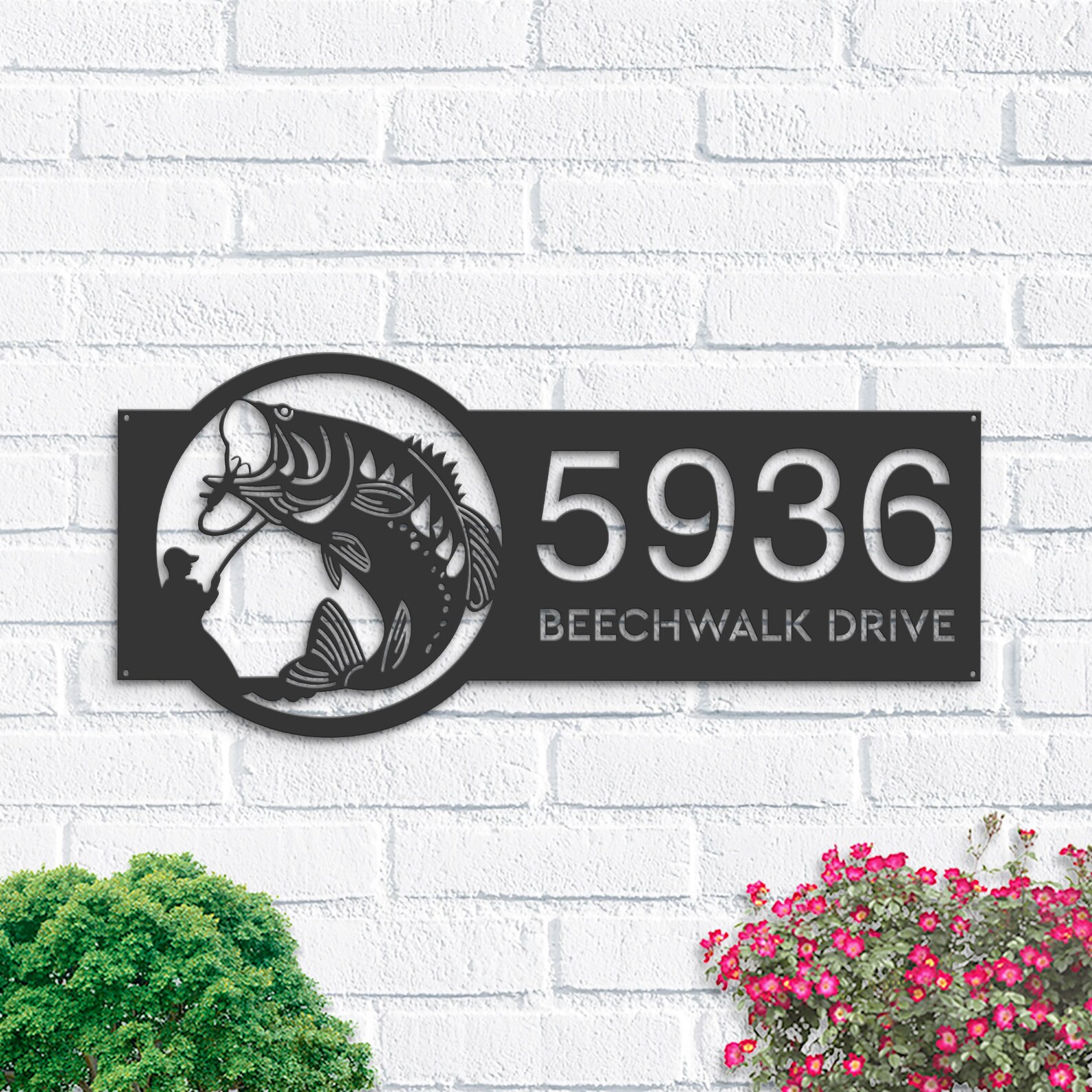 Personalized Bass Fishing Metal Address Sign – Yard Plaque