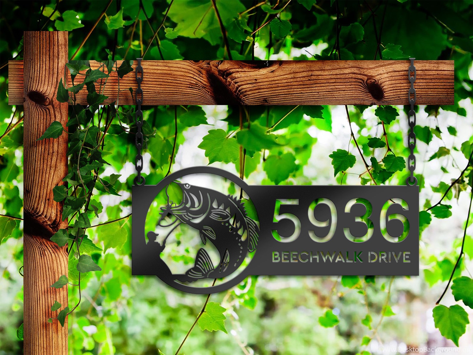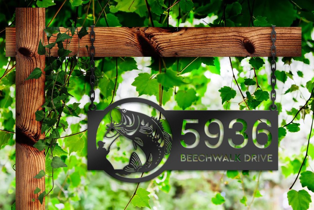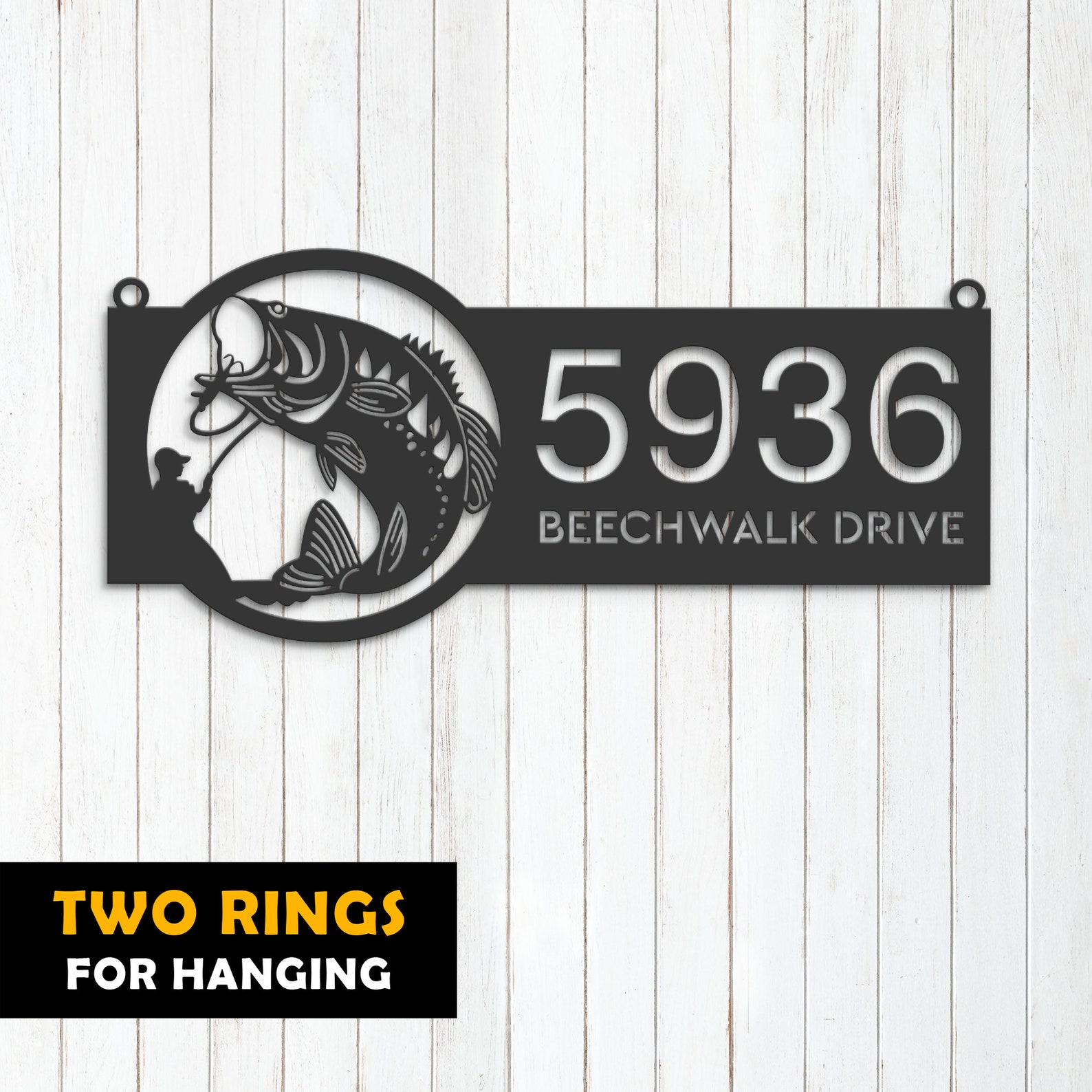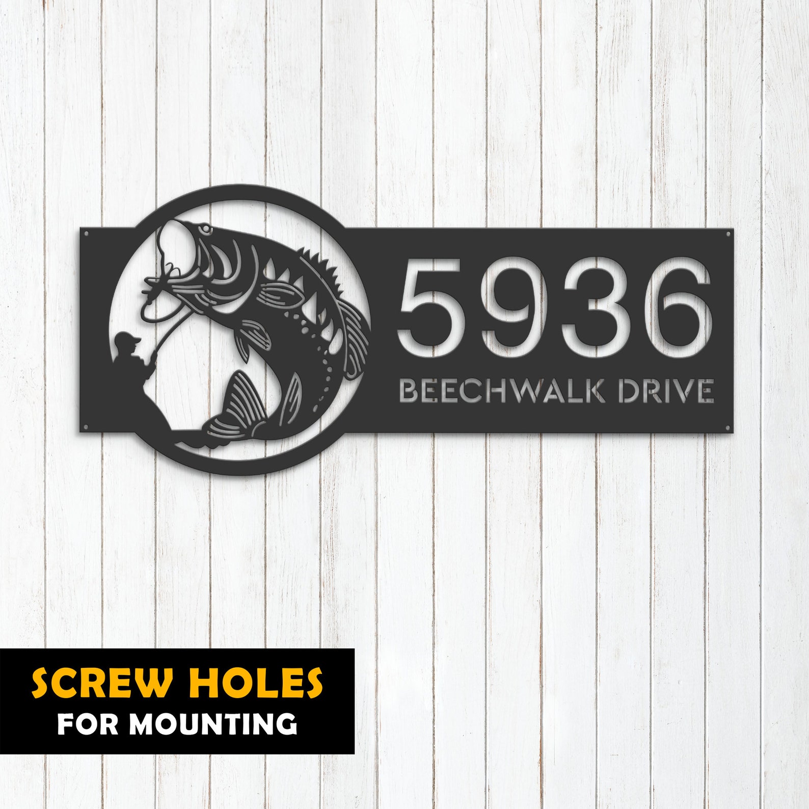 Personalized Bass Fishing Metal Address Sign – Yard Plaque