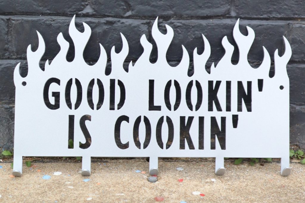 Keep your grilling master tools ready for action with this personalized BBQ tool holder. This barbecue sign includes hooks that will hold your grilling tools and keep your utensils organized. This personalized sign is a great piece to put out on the patio right next to the grill. That special man in your life will love this BBQ sign made specifically for him!