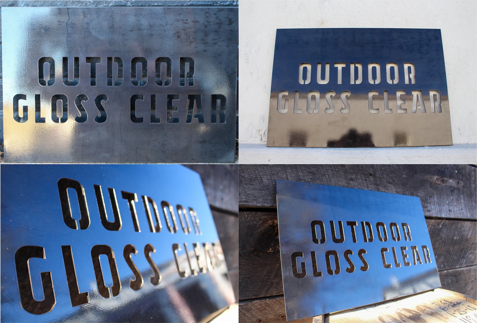 OUTDOOR GLOSS CLEAR – The Outdoor Gloss Clear finish is a glossy clear powder coat that makes the steel darker, sometimes even black. This UV protected finish will protect the steel in the toughest conditions including outside in wet and salty environments. Powder coat is a thick industrial coating that is VOC free and holds up for many years.