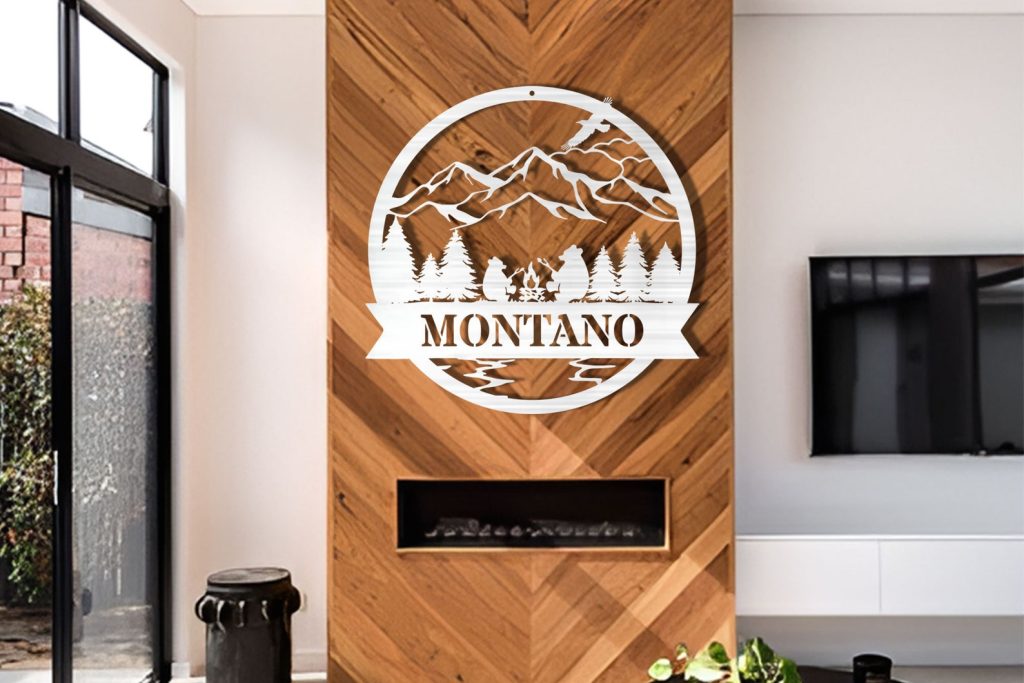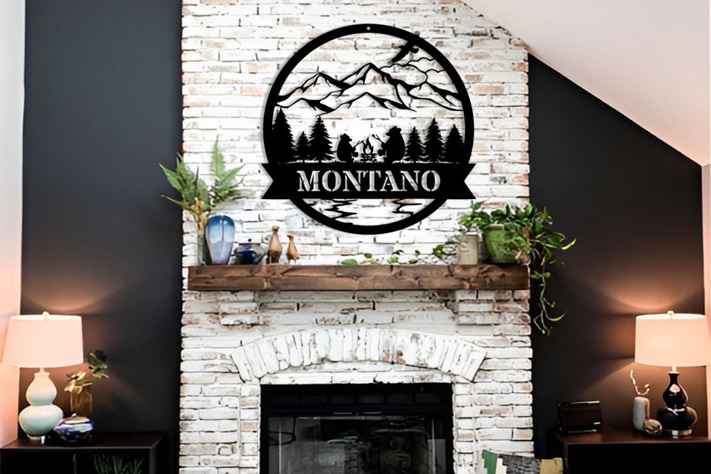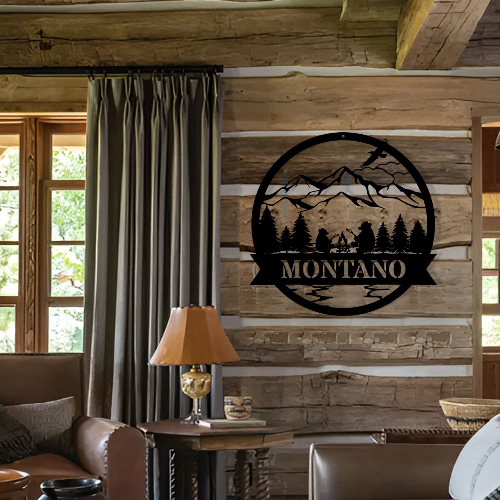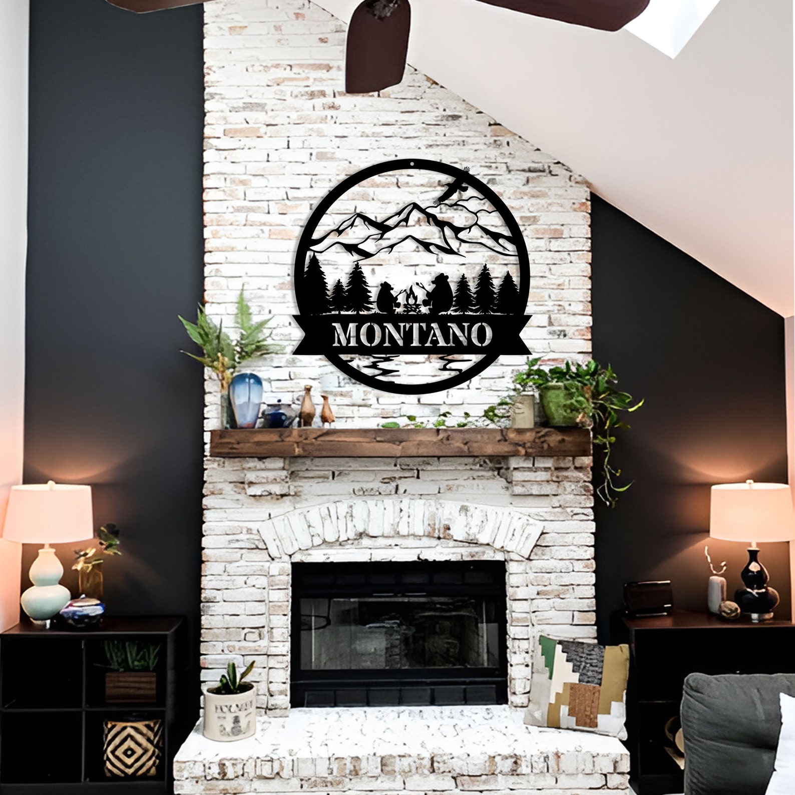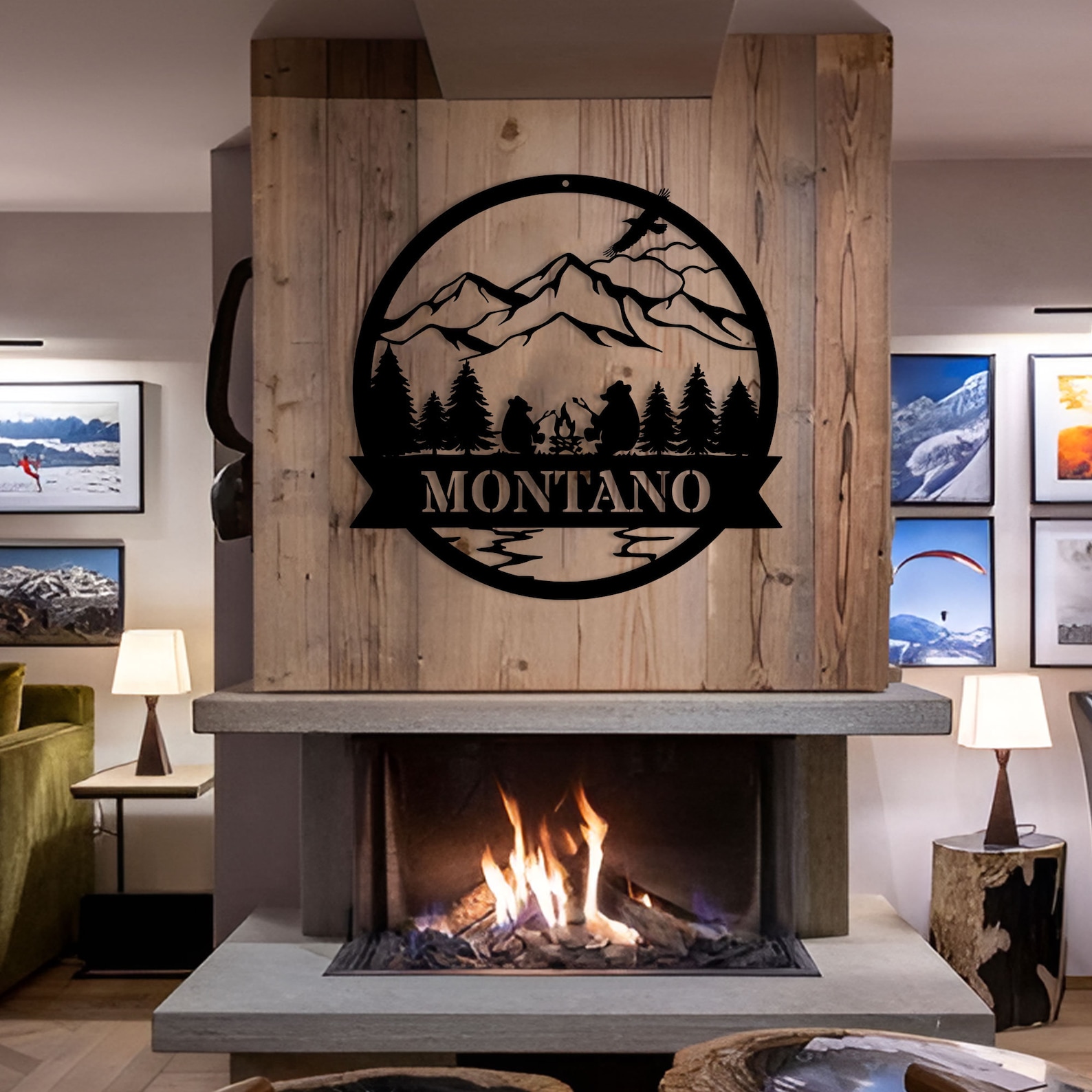 Personalized Bear Campfire Metal Sign – Cabin Wall Art