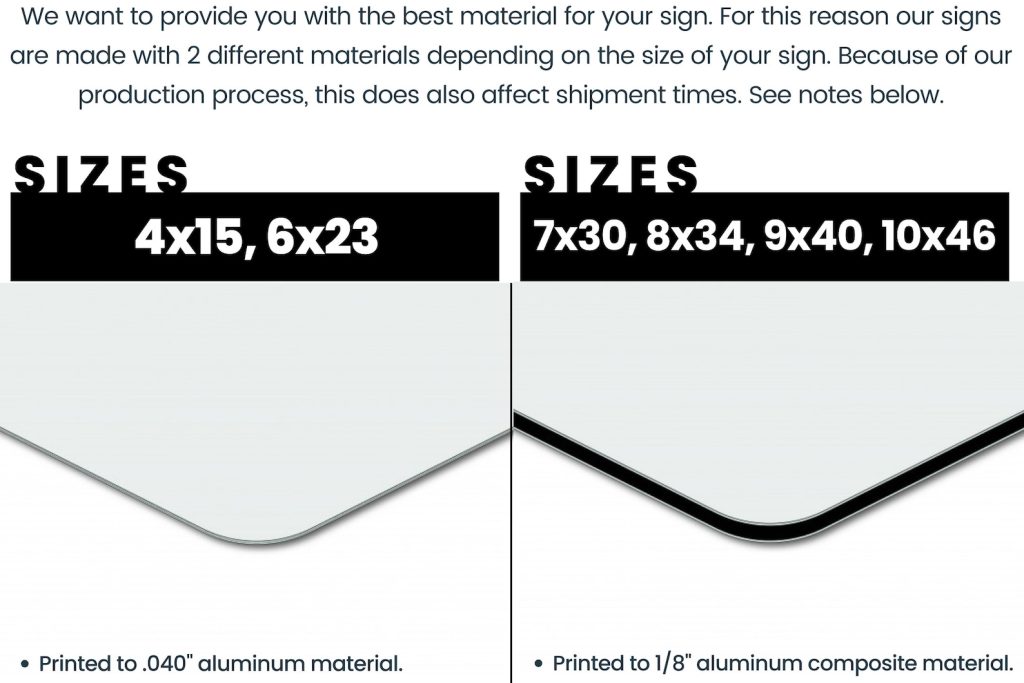Often used for custom sign for business, rental property signage, gift giving, directional signs, custom sign outdoor, wayfinding signs, warning signs, parking signs, yard signs, school signage, logo signs, street signs, exhibit and display signs, pet enclosures, insides jokes, personalize metal sign, general labeling and more! Unleash your creative potential with our custom metal signs.