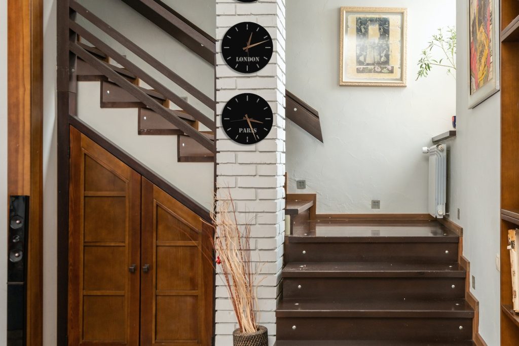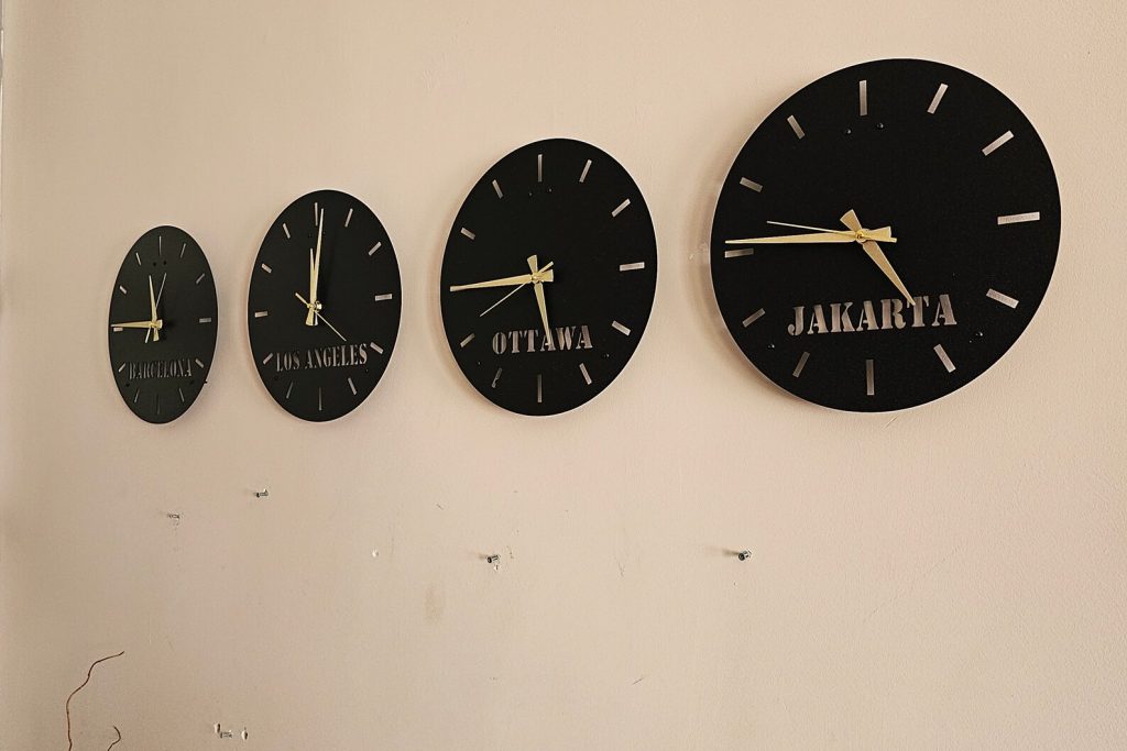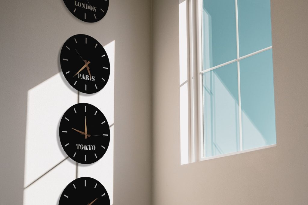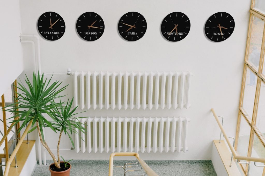 Each of the minimalist wall clocks in the set comes with a mounted hanger.