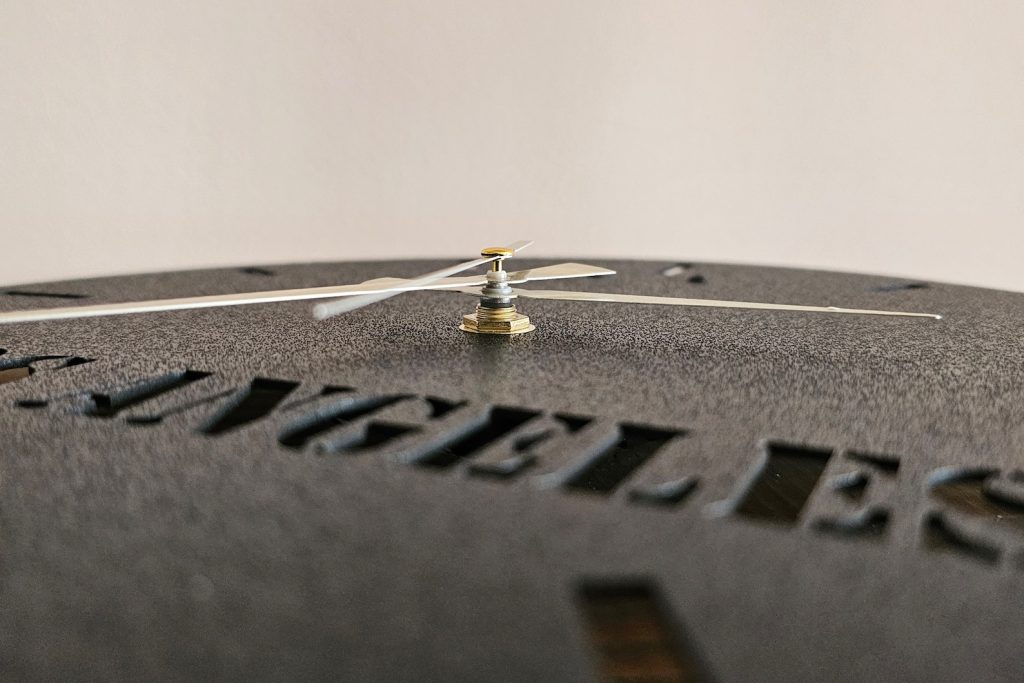 Silent Modern Wall Clock Set surface is finished with a textured matte black paint.