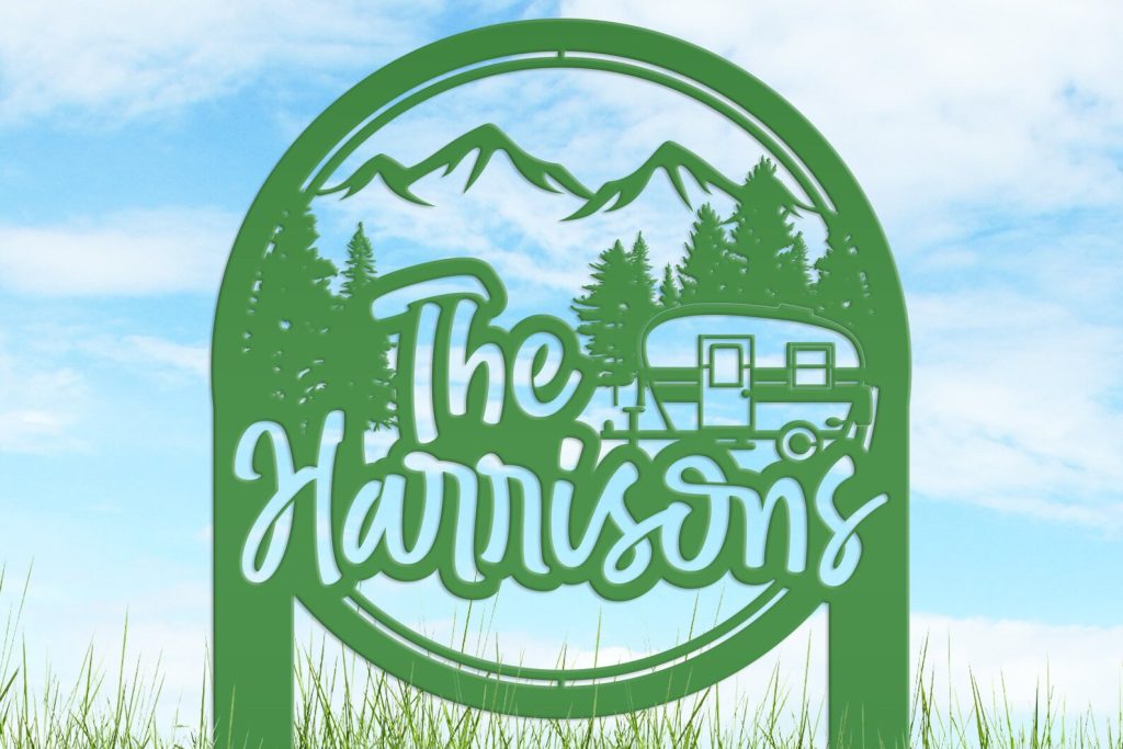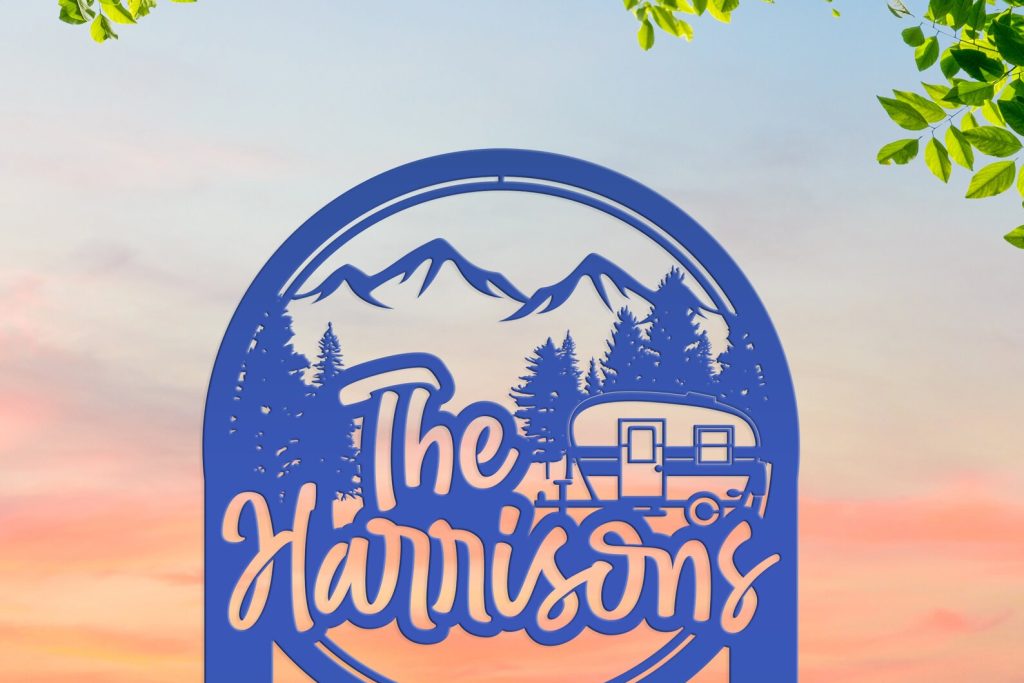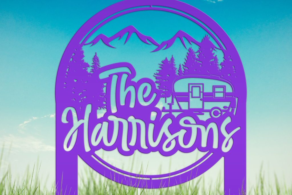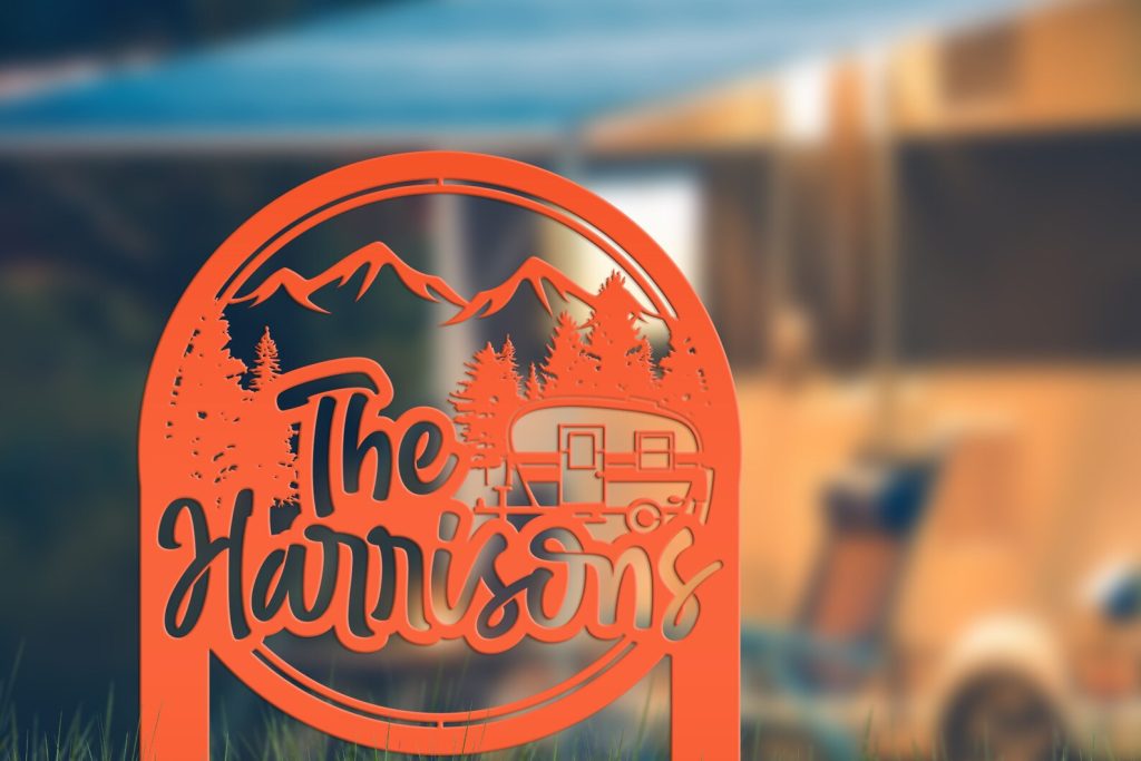 This metal camping sign is personalized with your family name. It is perfect for outdoor campsites and makes a great gift for weddings or any other special event. This sign can also be used as a decoration in your RV park or camper.