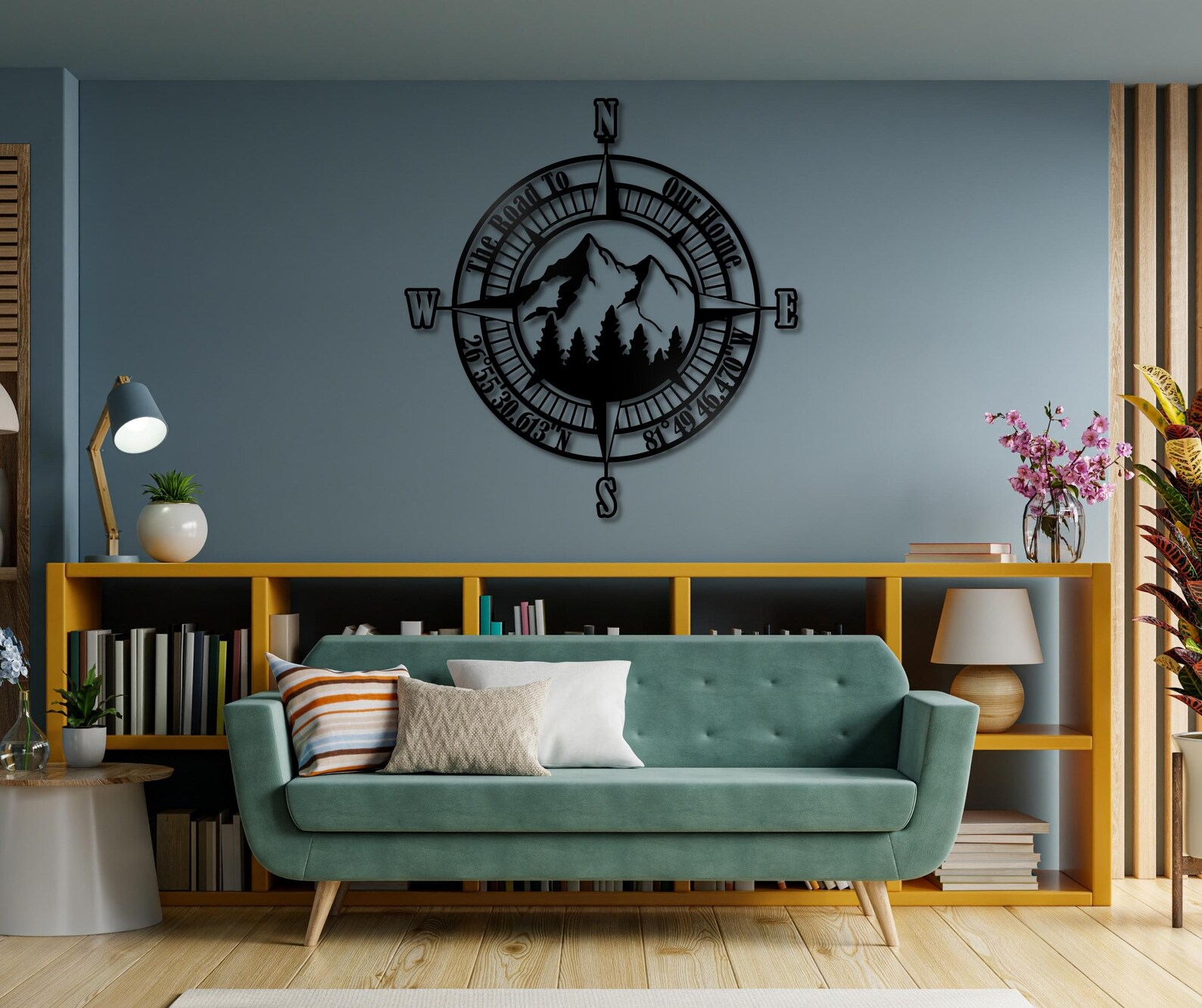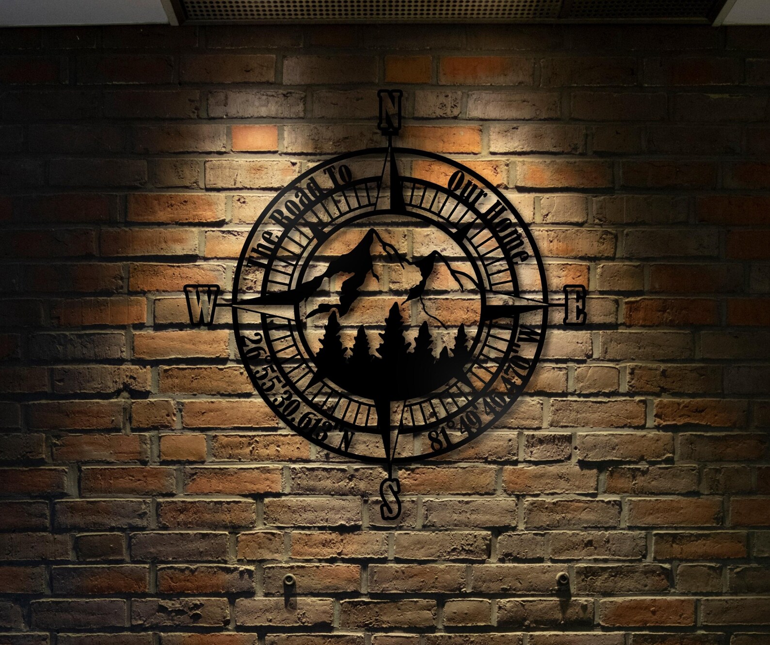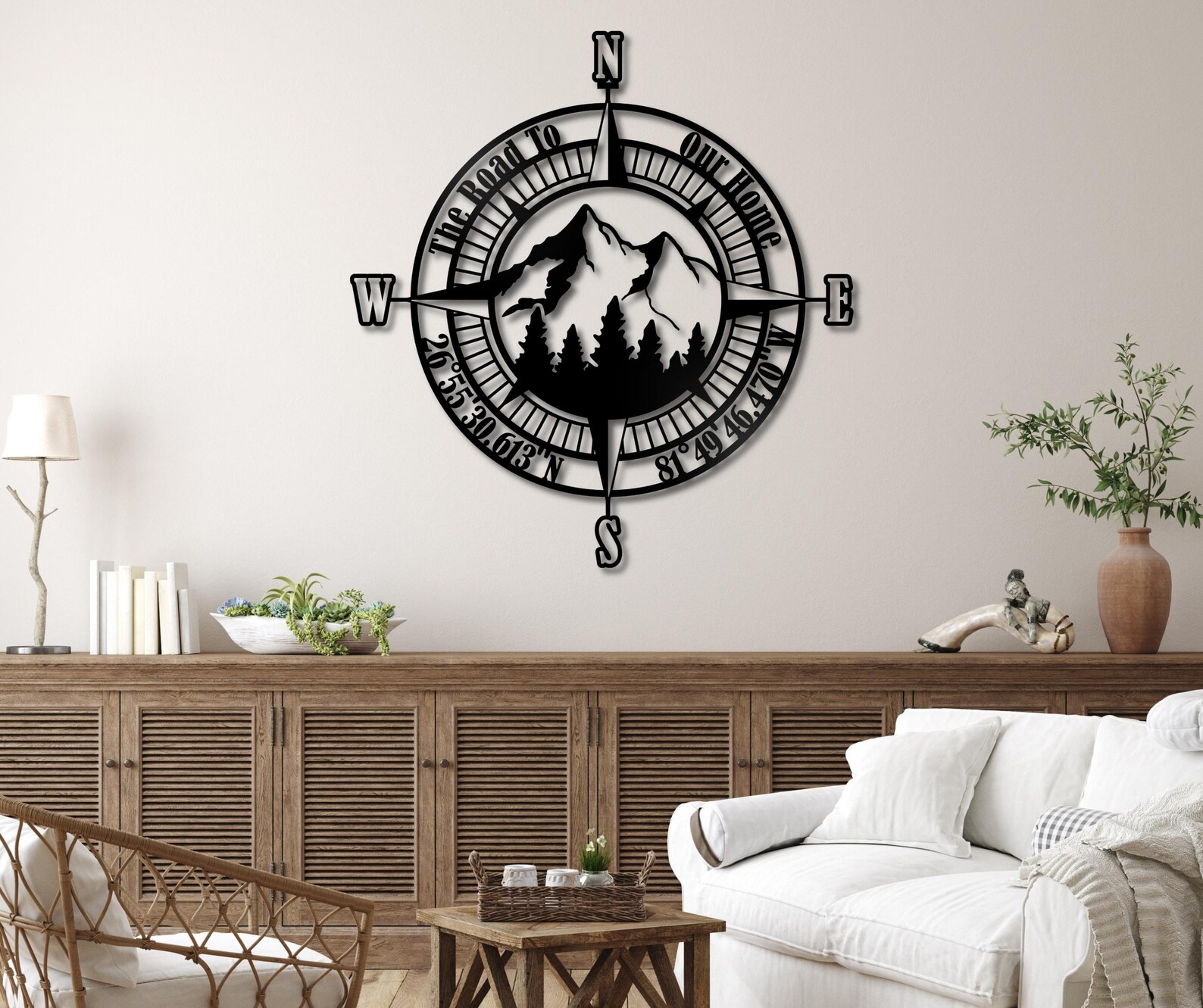 Personalized Compass Metal Wall Decor . Mountain and Forest Themed.