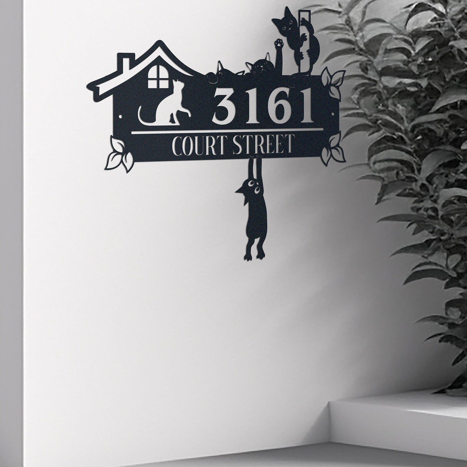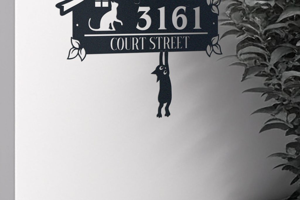 Be the first to review “Personalized Cute Cat Metal Address Sign – House Number”