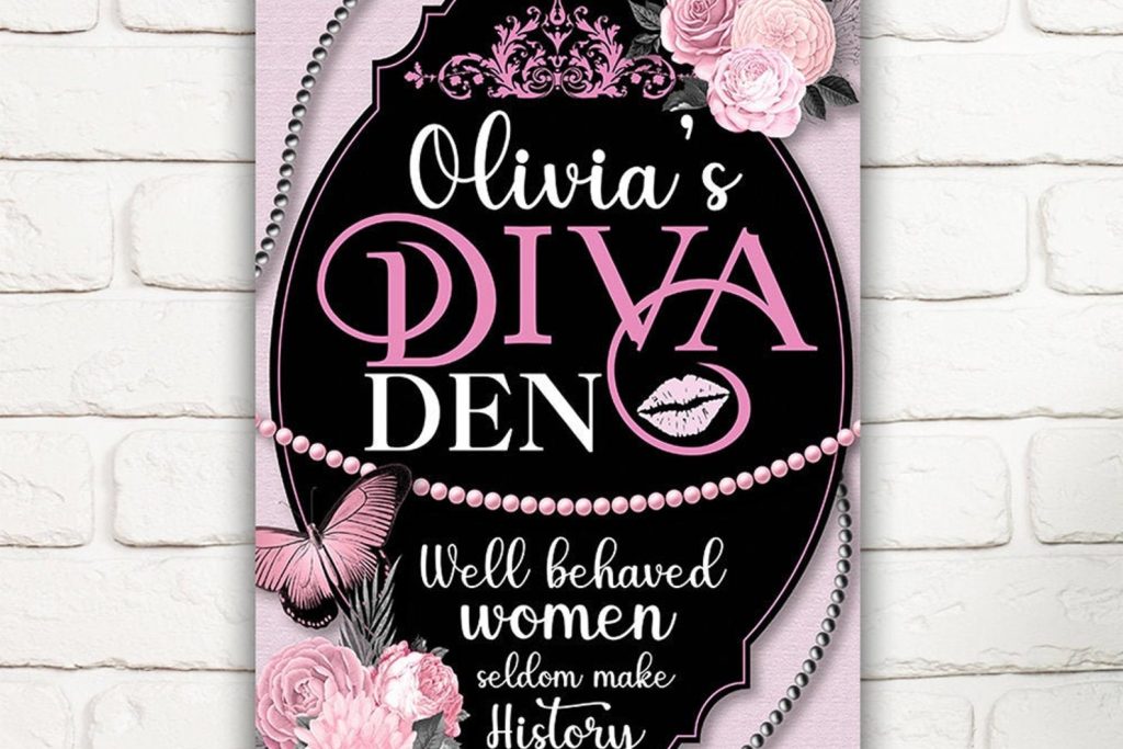 Personalized Diva Den 8" x 12" or 12" x 18" Aluminum Tin Awesome Metal Poster