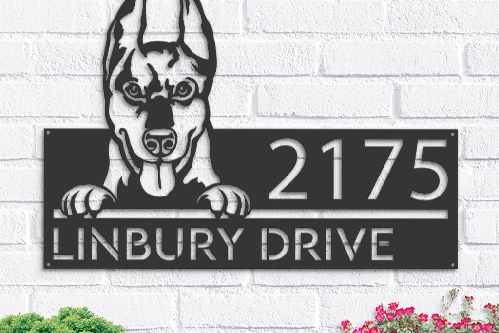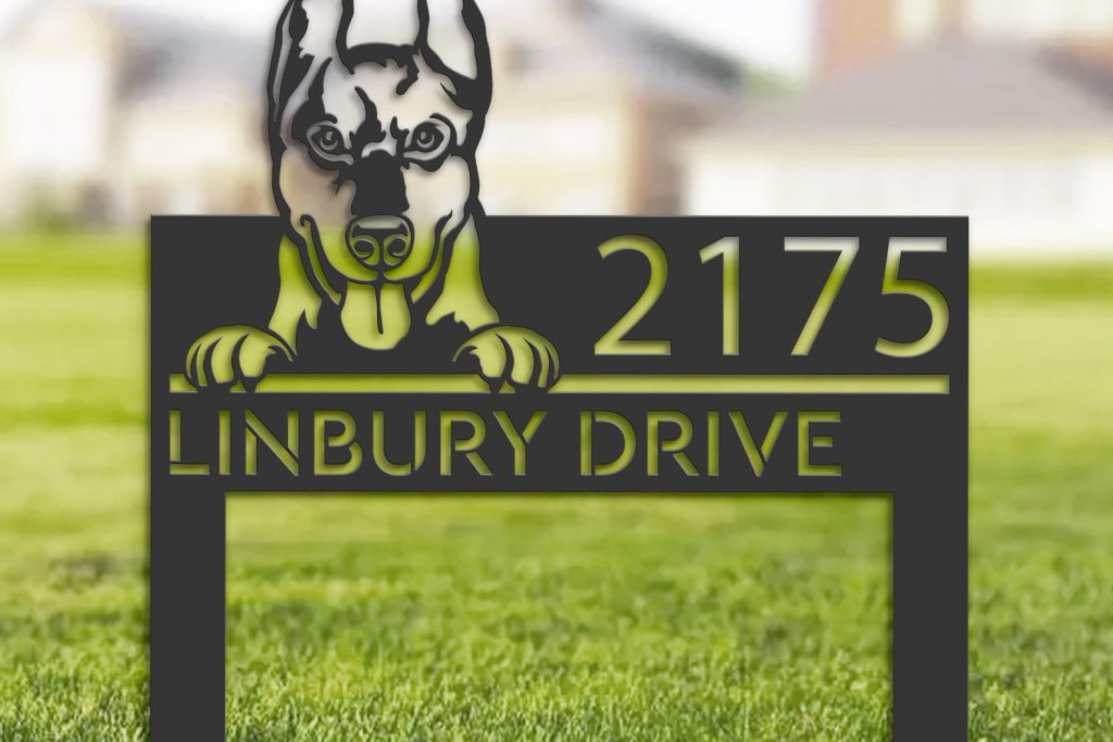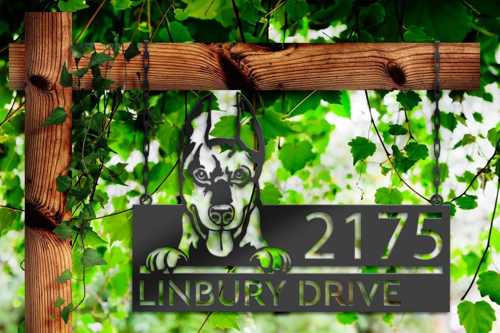 Be the first to review “Personalized Doberman Metal Address Sign – Puppy Yard Plaque”