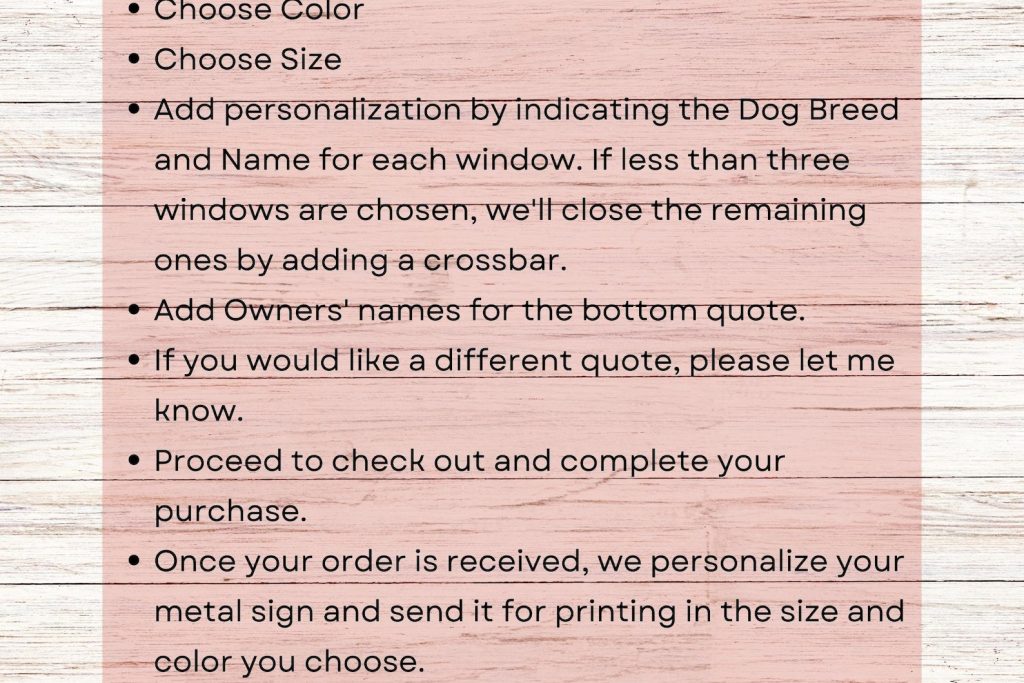 Our Personalized Metal Dog Signs can be customized with any breed of dog. You can choose from over 100 popular dog breeds and add up to 3 different species welcoming your guests.