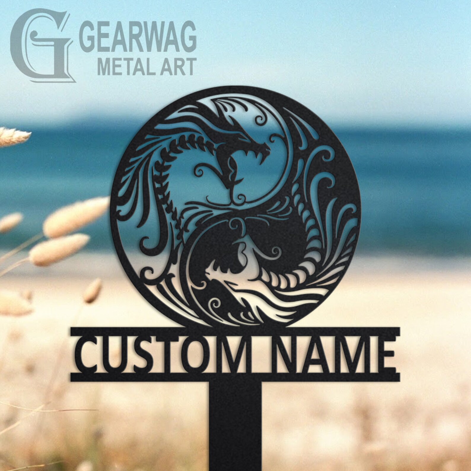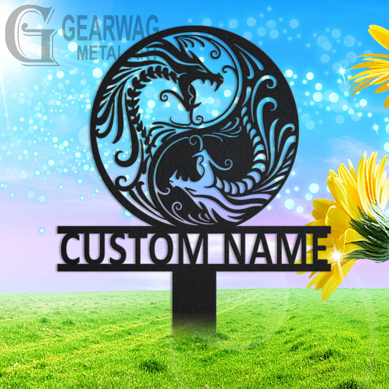 Personalized Dragon Garden Sign: Metal Yard Art