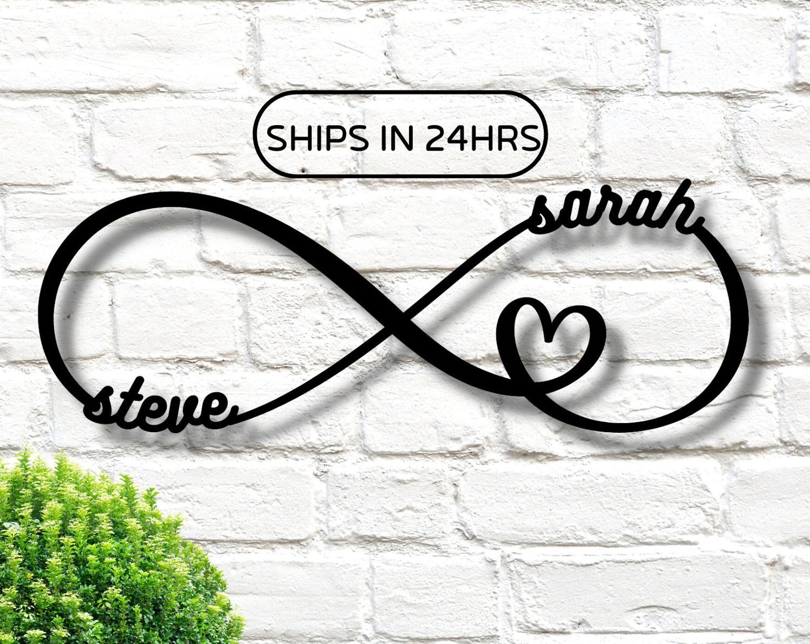 Express your love and commitment with our personalizable metal infinity sign. Customize it with your initials, wedding date, or a special message, and display it in your home or outdoor space. Made from high-quality metal, this sign is both durable and weather-resistant, making it perfect for any environment. Whether it9;s to commemorate a special moment or just to show off your style, this infinity sign is a beautiful and timeless piece. Order yours today and create a lasting symbol of your love and devotion