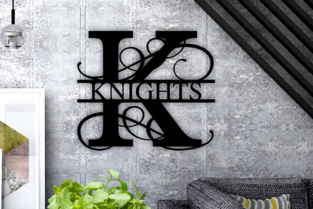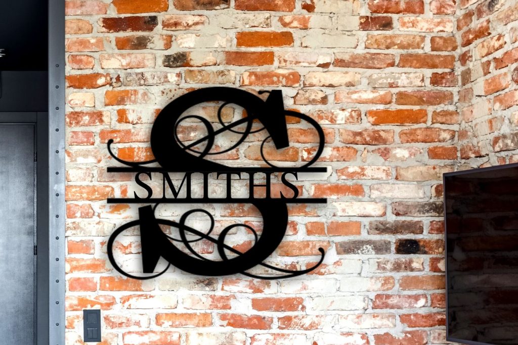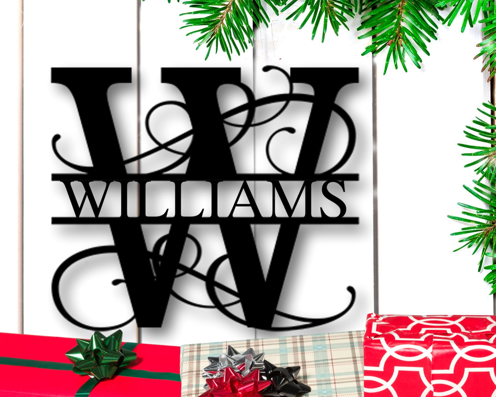 Beautiful Metal Split Monogram Sign with your family9;s name!