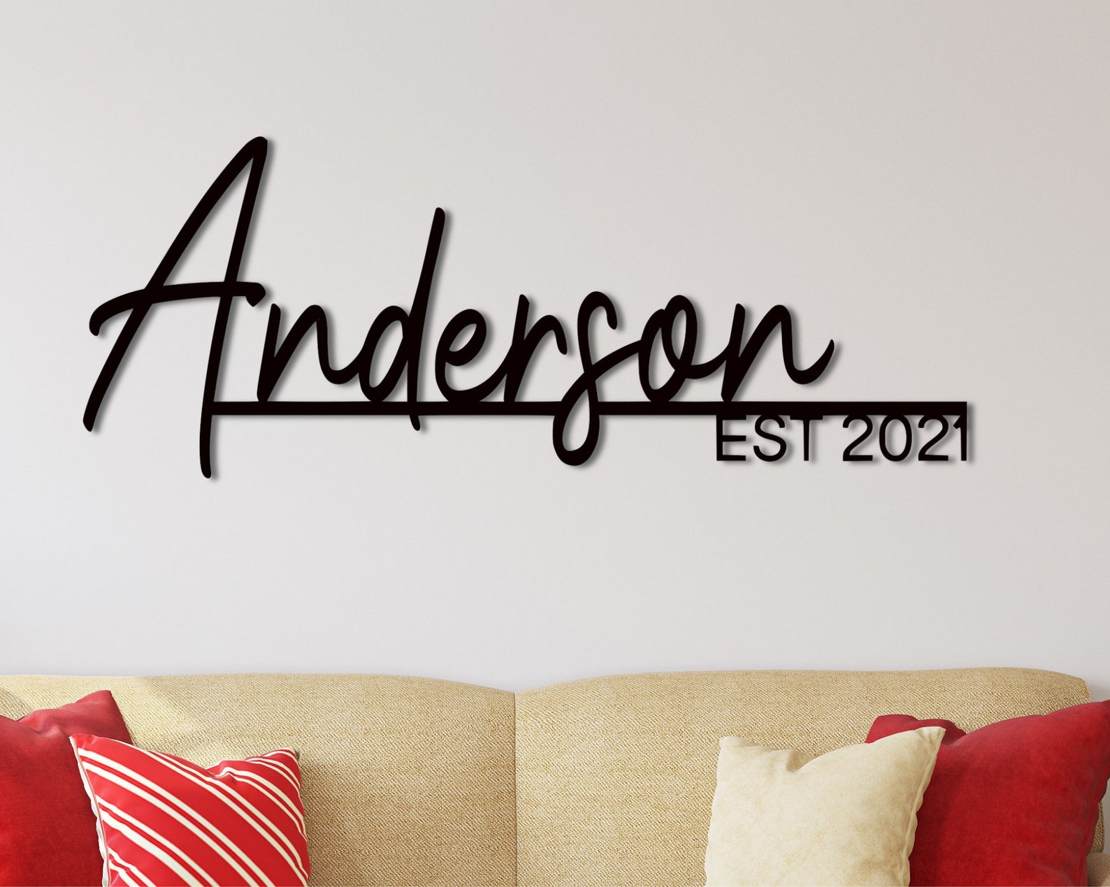 Elevate your home decor with a beautiful metal sign. Made with 18 gauge steel and powder coated in your choice of 5 colors, this sign is built to withstand the elements for years of enjoyment. Add a touch of elegance to your home on the inside, outside, or both!