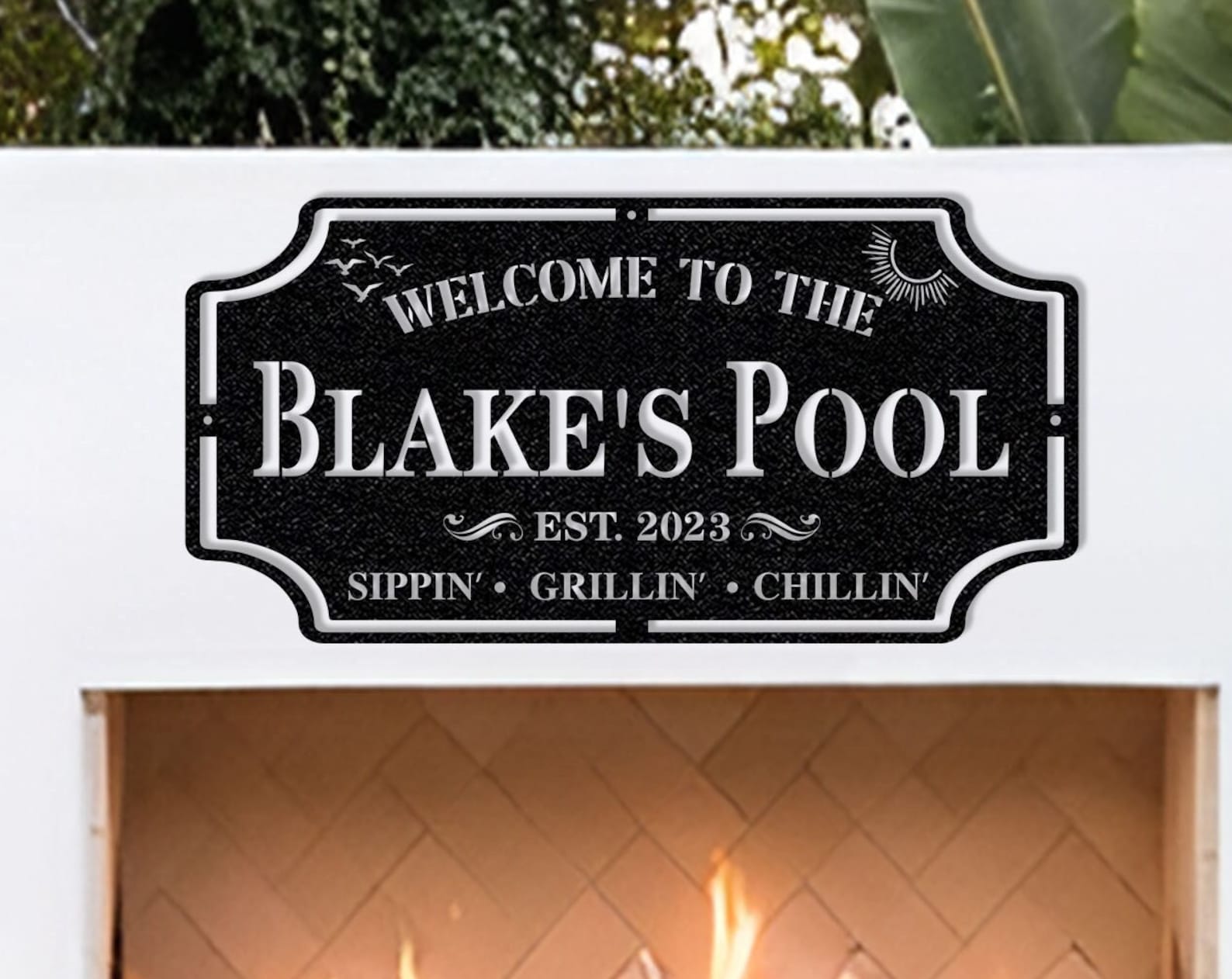 Personalized Family Pool Sign,Welcome Pool Metal Sign, Tiki Bar, Outdoor Pool Signs, Pool Oasis Personalized Sign for Pool,Patio Decor,poolside metal sign ,Housewarming Gift