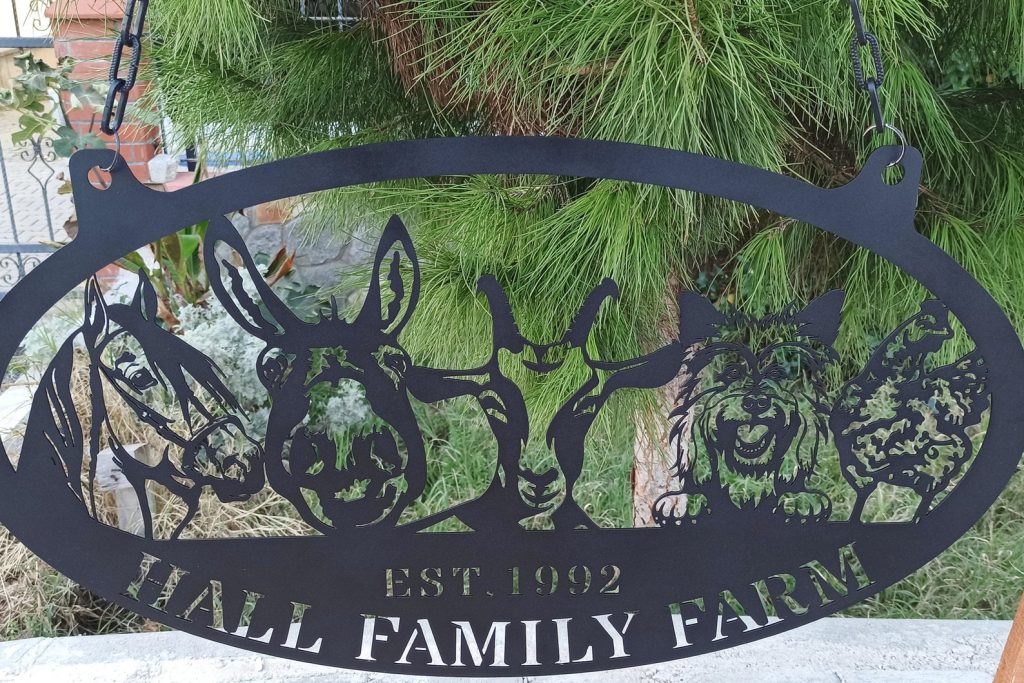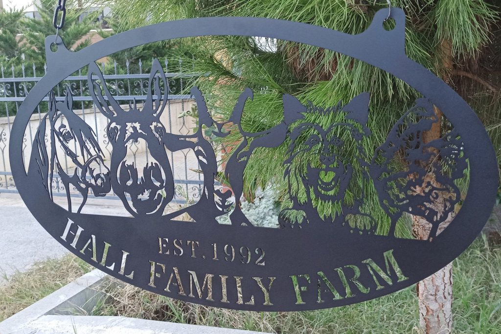Personalized Farm Sign With Established Date, Metal Sign Personalized, Metal Sign Custom, Metal sign,corn stalks, tractor , Family Name Sign, Barn Sign, Metal Farm Sign With Dog Goat CHicken horse donkey Farm