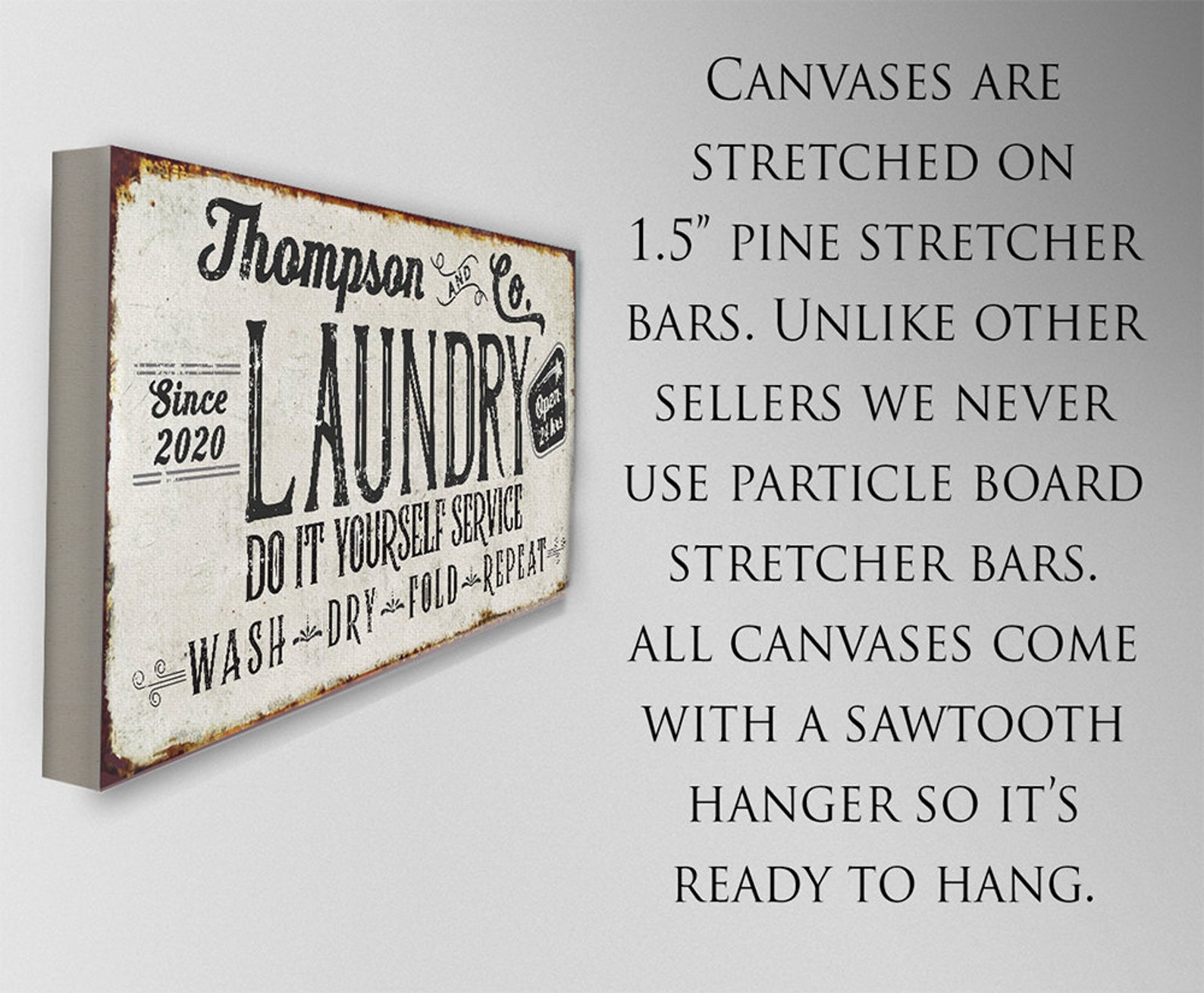 Personalized-Laundry and Co- Canvas(Not Printed on Metal)Stretched on Wood-Laundry-Housewarming Gift