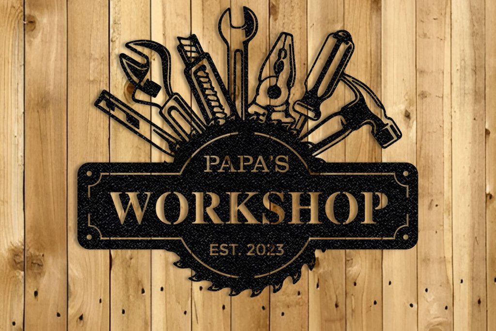 Personalized Fathers Day Sign Workshop Sign Wall Art Papas Work Shop Metal Sign Garage Sign Personalized Gift for Dad Grandpa Christmas Gift Birthday Gift