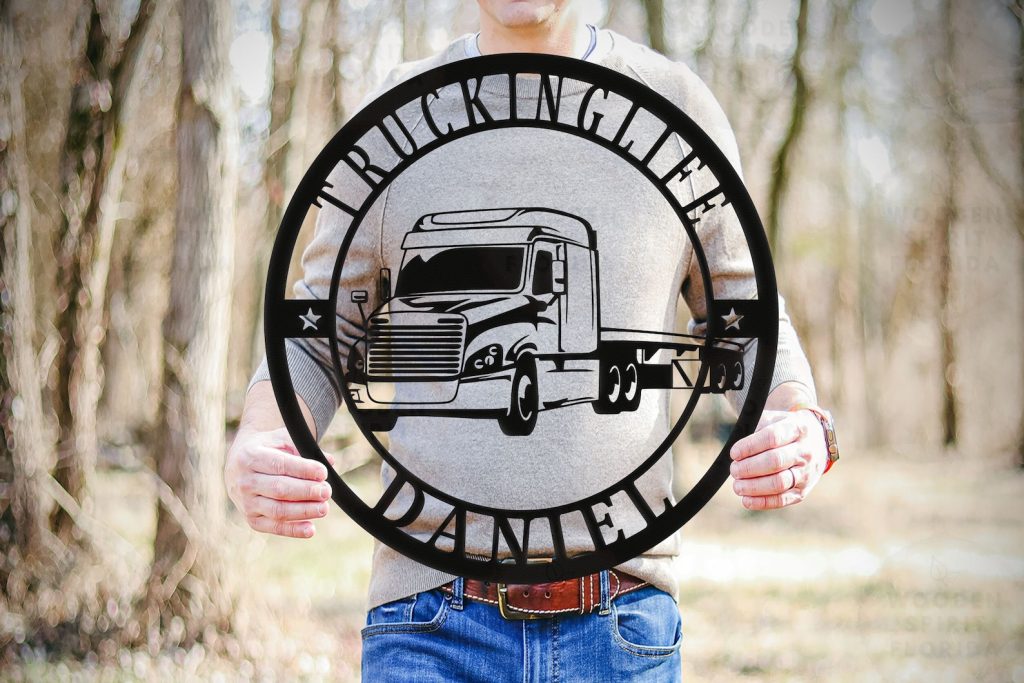 Personalized Flatbed Truck Wall Art – Custom Metal Decor, Retirement Gift, Truck Name Sign