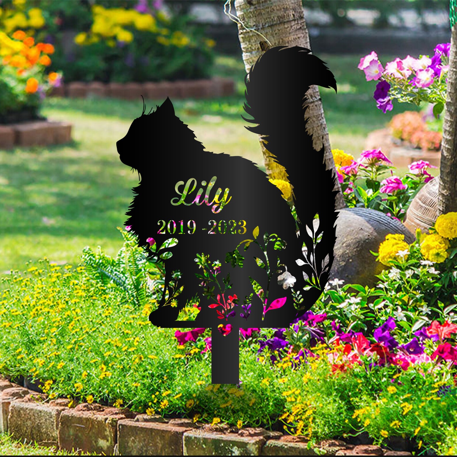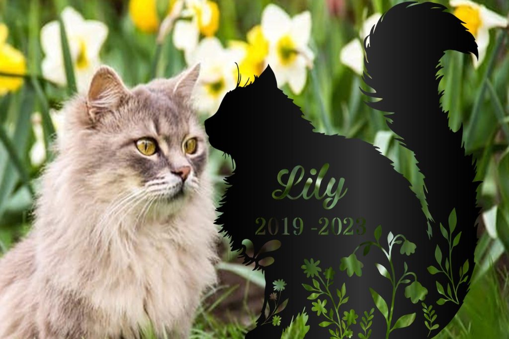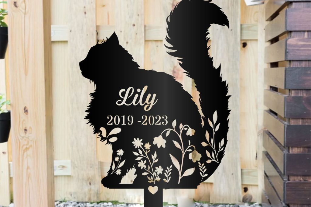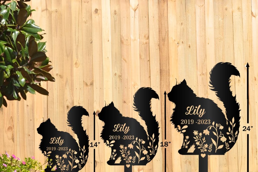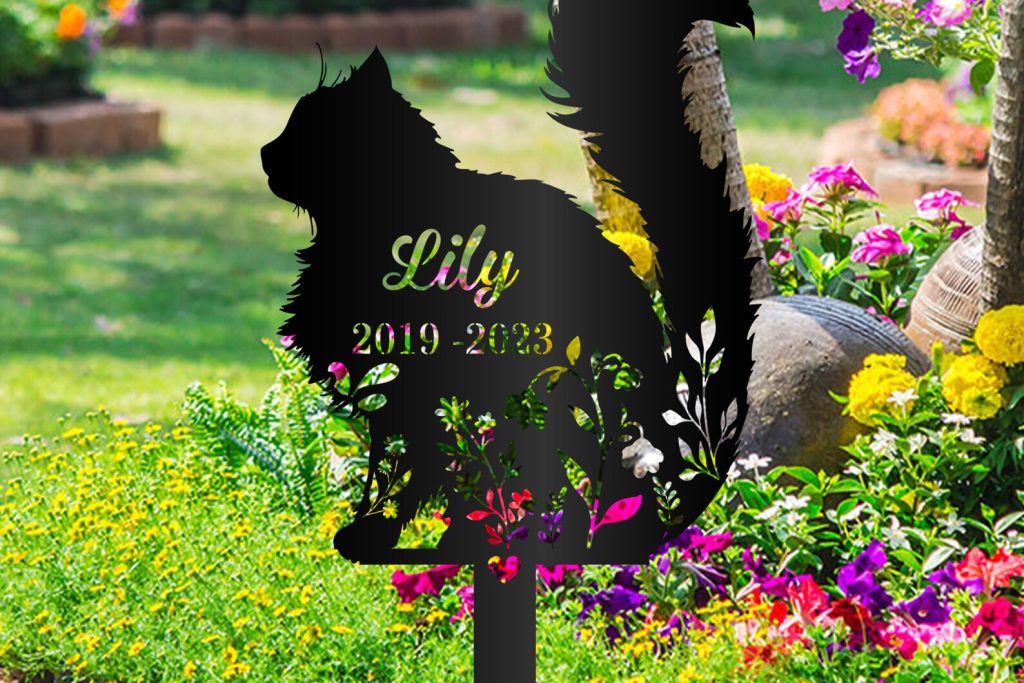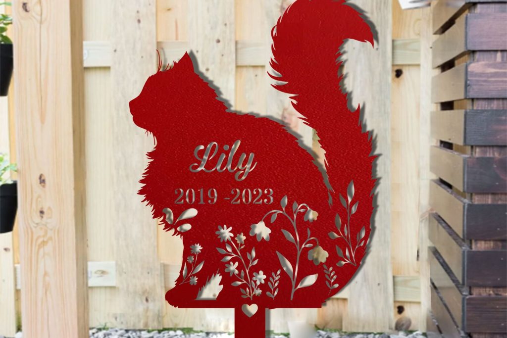 Personalized Fluffy Cat Memorial Metal Garden Stake