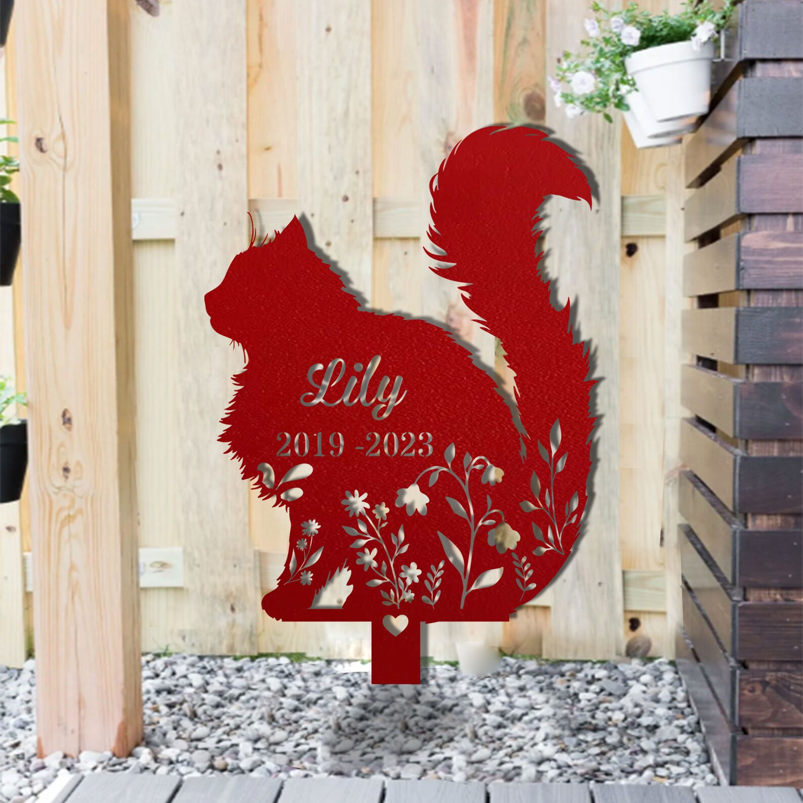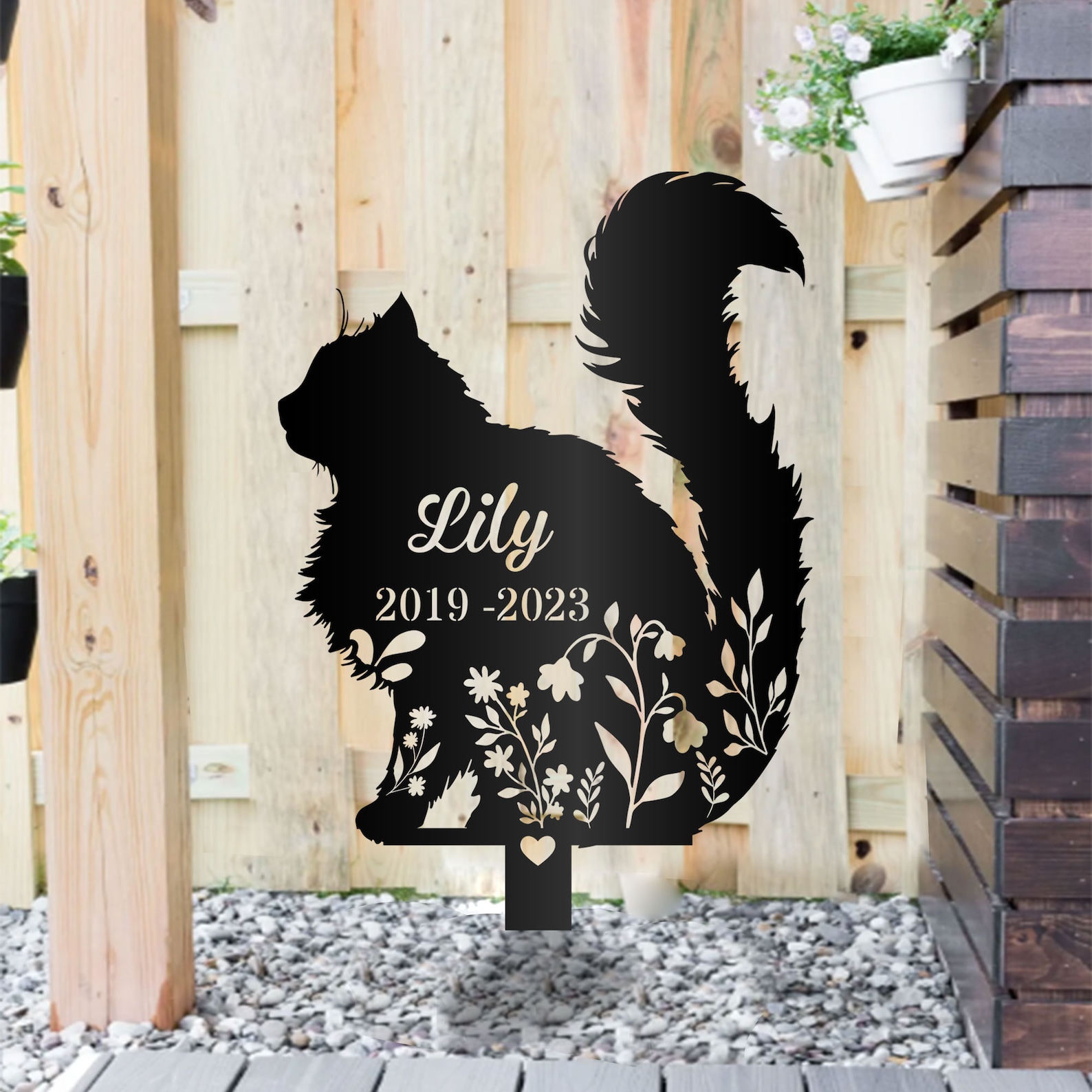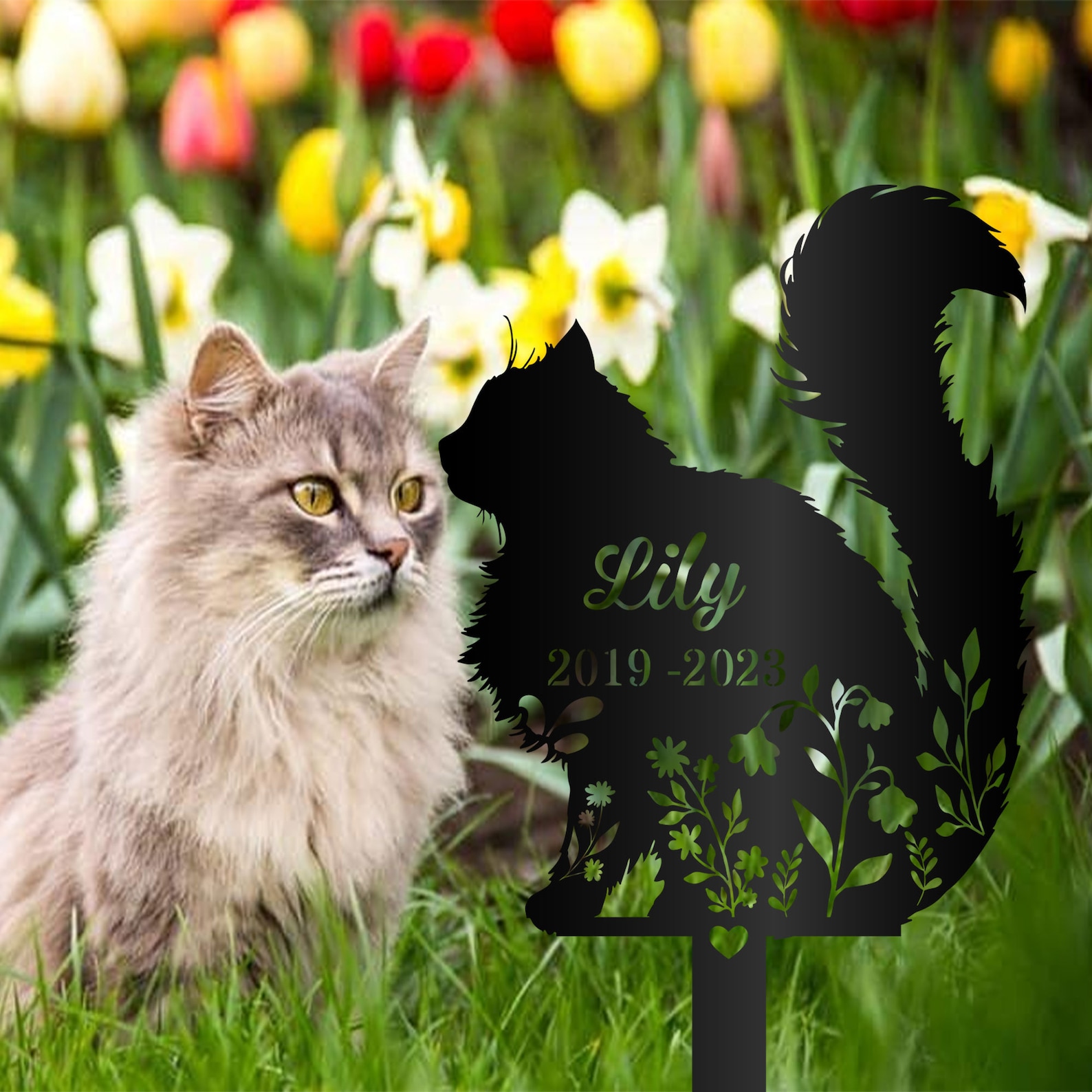 Personalized Fluffy Cat Memorial Metal Garden Stake