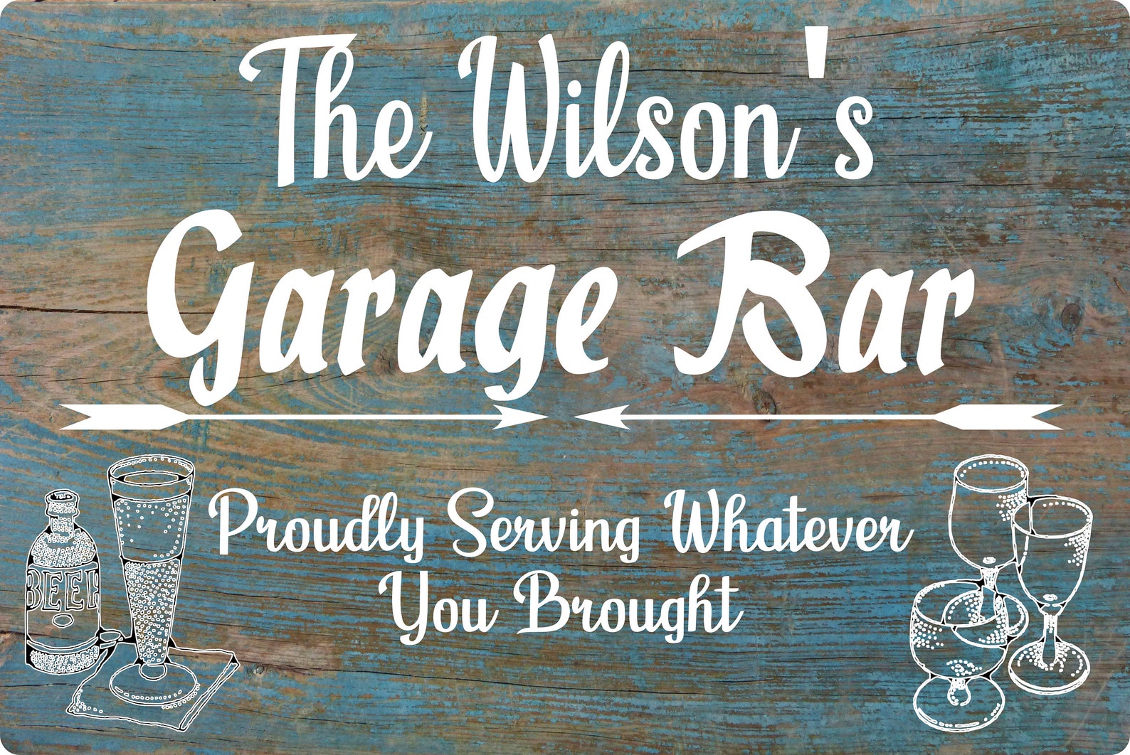 Personalize your Garage bar- Black text on you choose 9;wood9; background. -NOTE the Wood or rust is NOT real.