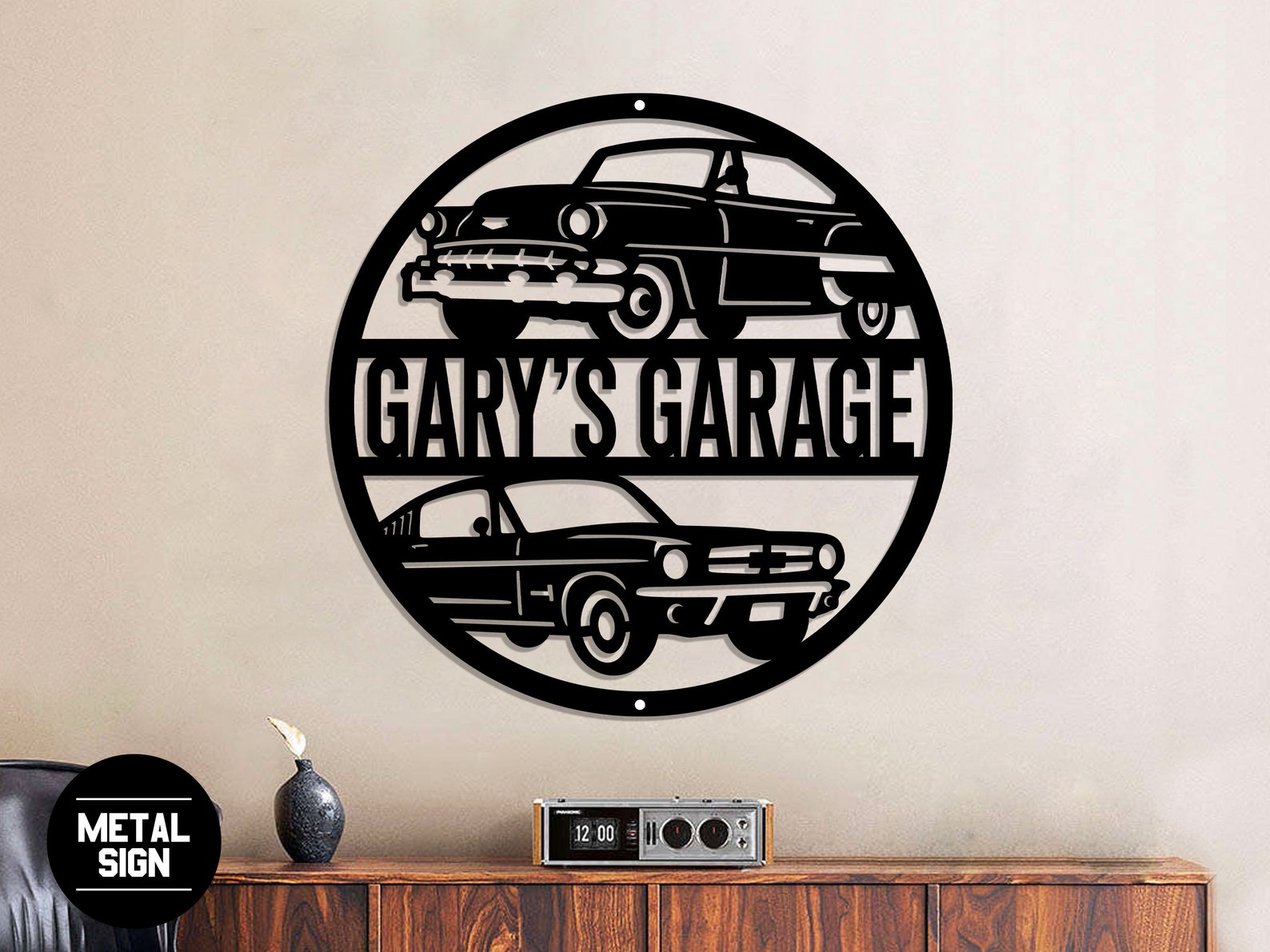 This stunning, highly-detailed and personalized classic car sign is perfect for garage decor, man cave decor, garage sign for dad, garage wall art, backyard decor, patio signs, garage or man cave decor