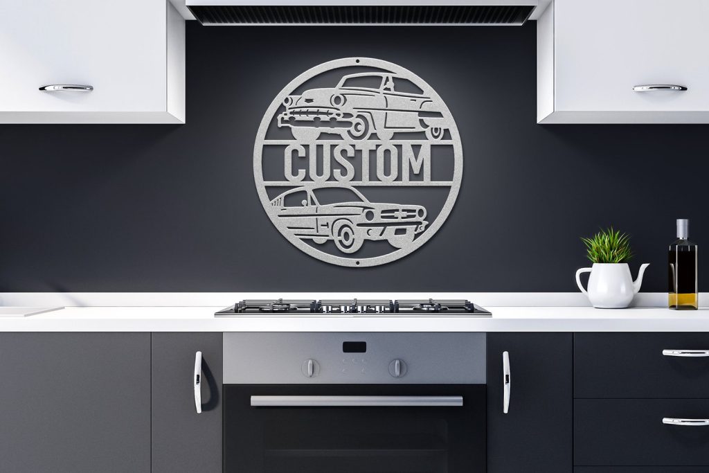 Elevate your garage wall decor with this beautiful custom garage metal wall art. Made with 18 gauge steel and powder coated in your choice of 5 colors, this personalized garage metal art is built to withstand the elements for years of enjoyment. Brand it with your last name, custom slogan or humorous message