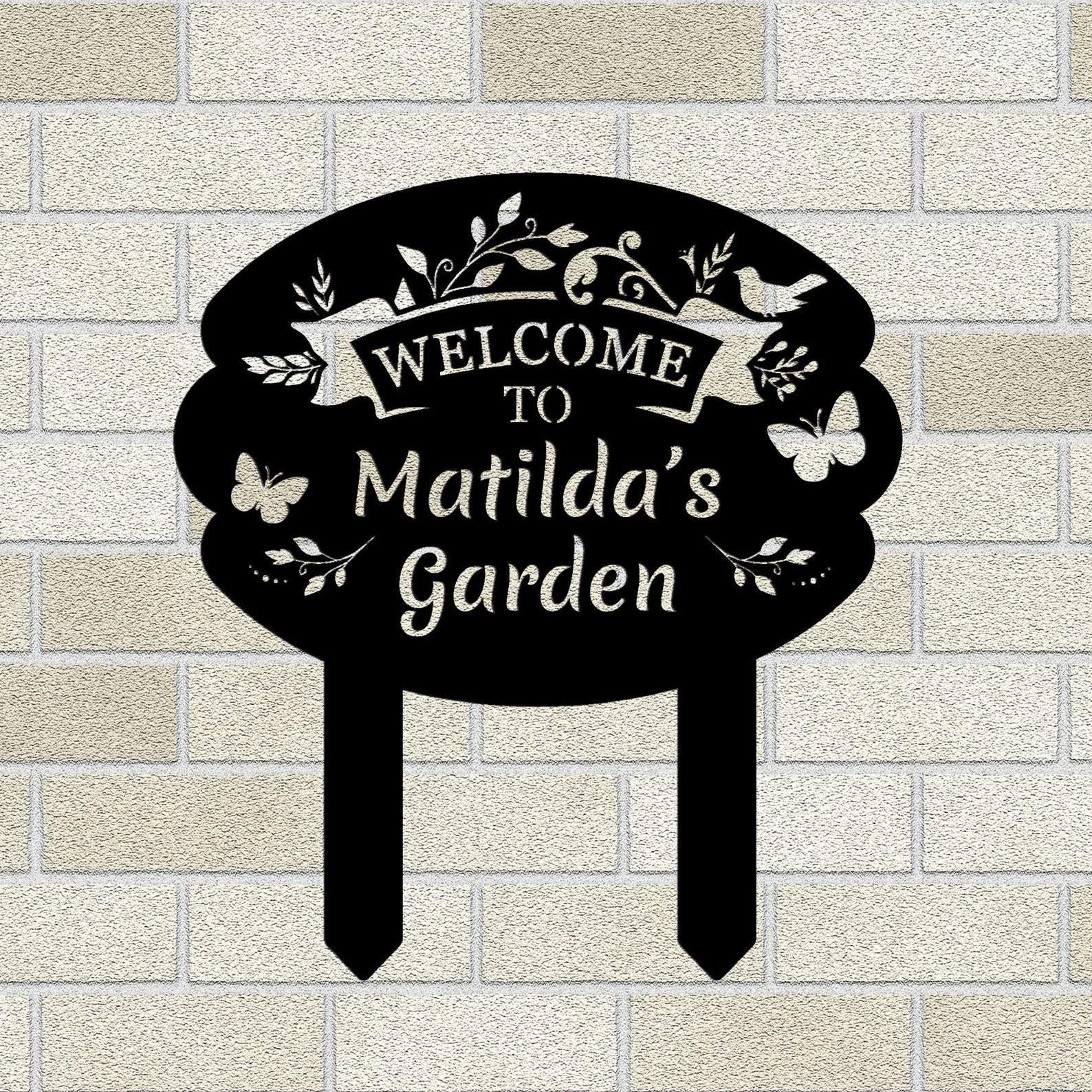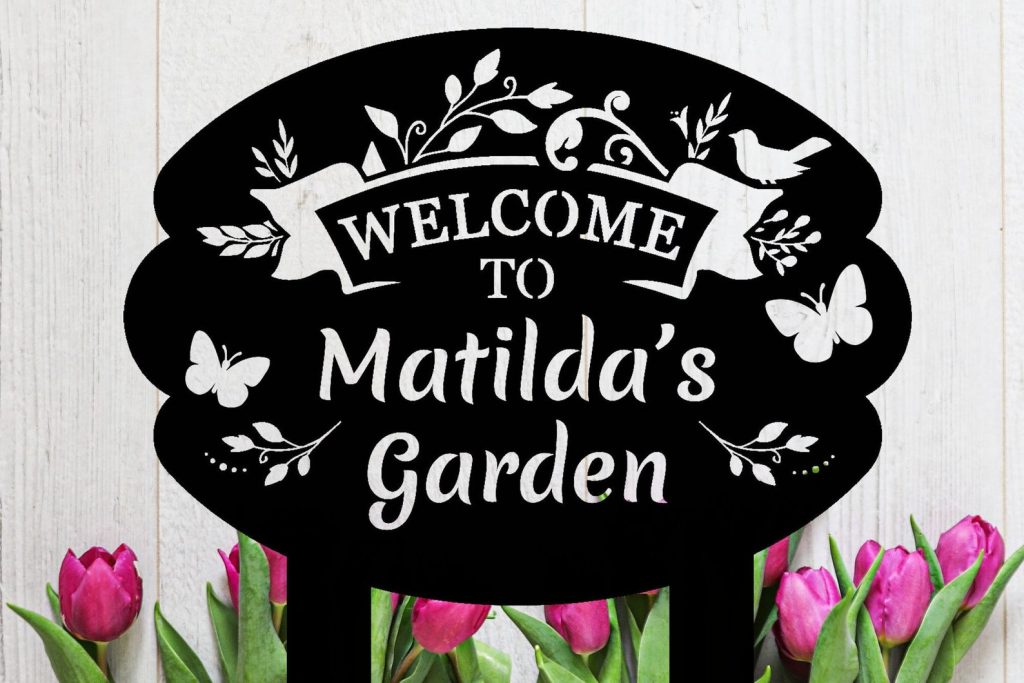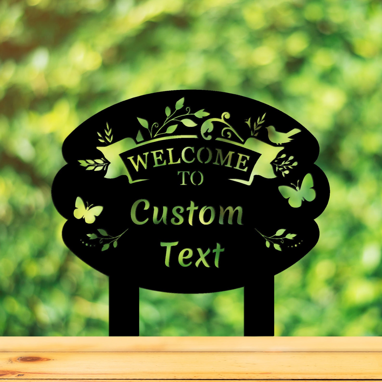 Personalized Garden Metal Sign with Stakes – Custom Decor