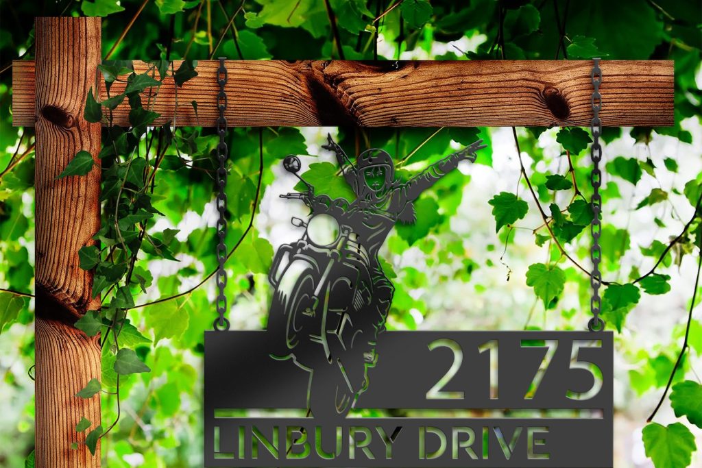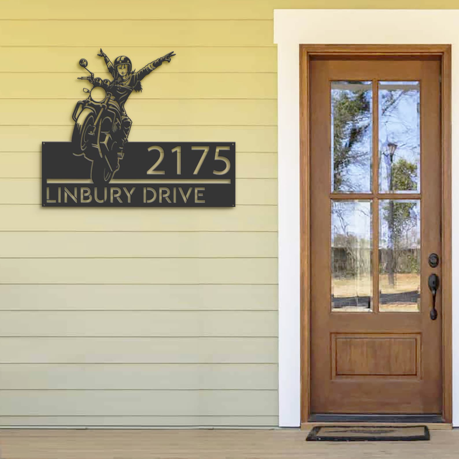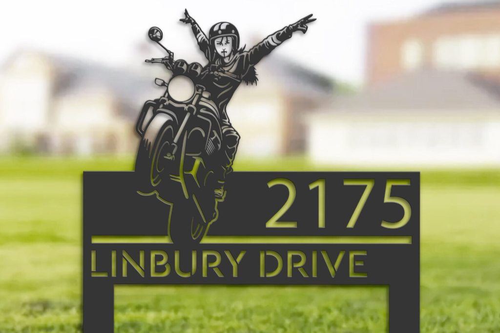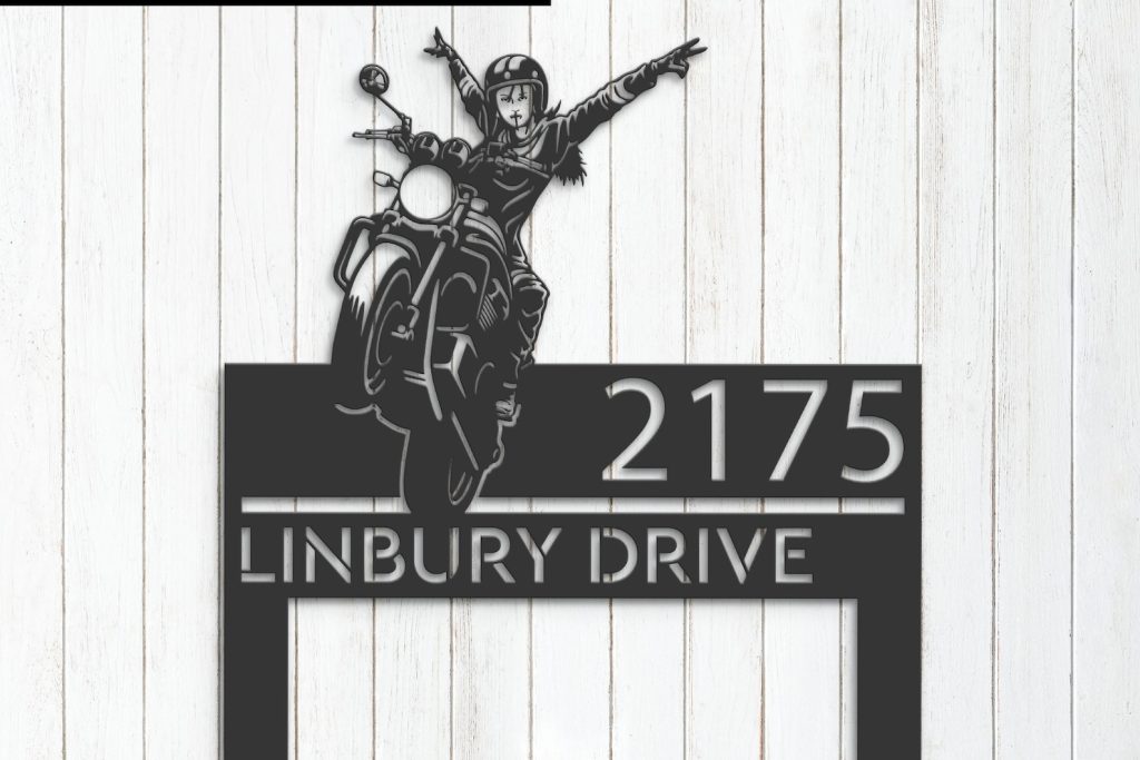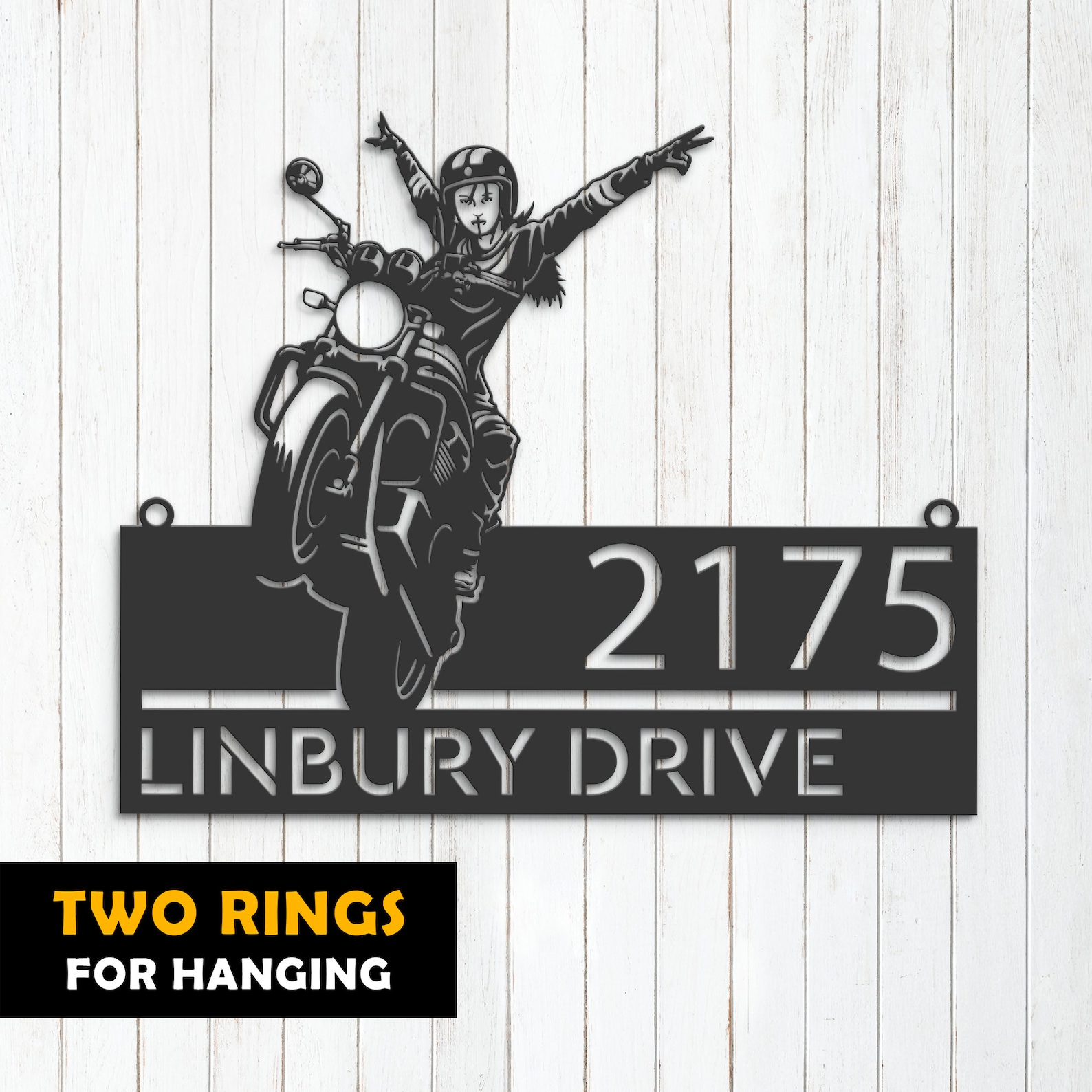 Be the first to review “Personalized Girl Biker Bike Rider Metal Address Sign – Hanging Address Plaque”