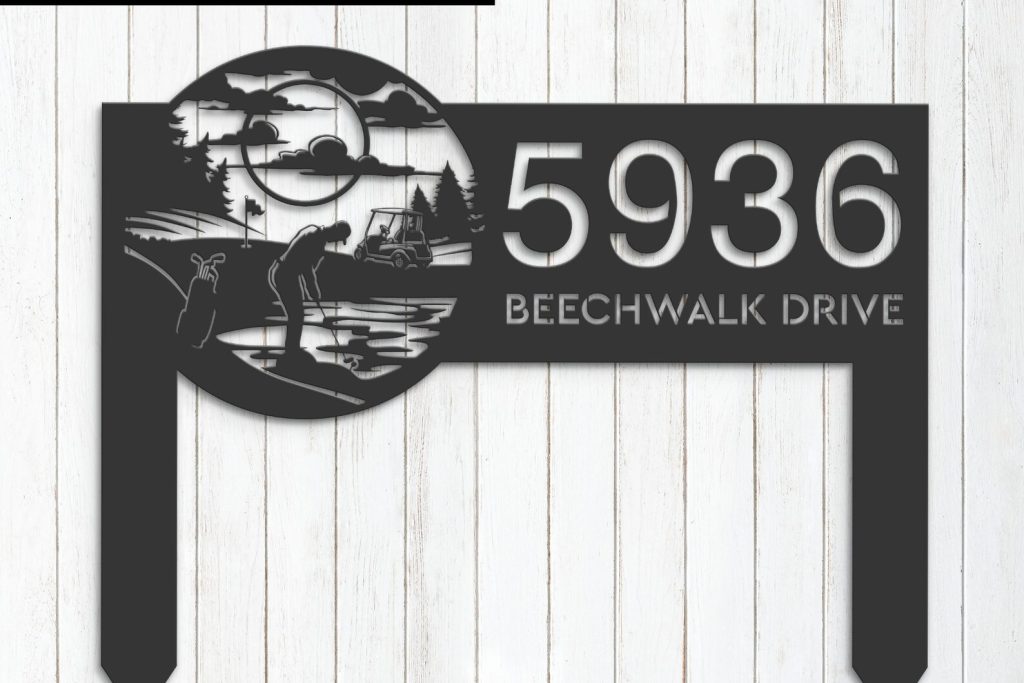 Personalized Golf Club Metal Address Sign – Custom House Number