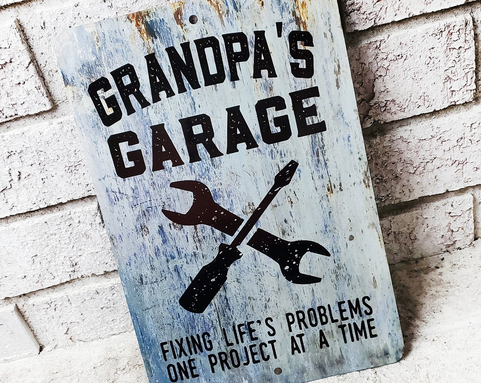 Grandpa9;s Garage, Mechanic gifts, Best Grandpa gifts, dad9;s garage, garage gifts, man cave, outdoor metal signs, gifts for grandpa