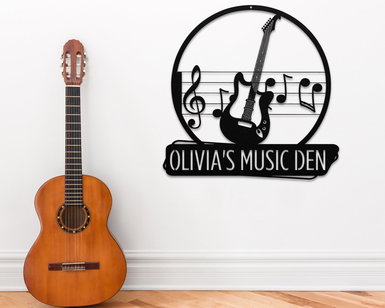 Introducing our Custom Guitar Metal Sign, the perfect addition to any music room decor! This Guitar Metal Wall Art is handcrafted with precision and showcases a stunning guitar design that will surely catch your eye. Hang it on your wall and transform your space into a music oasis. Whether you9;re a guitar enthusiast or looking for a unique gift for your guitar studio, our Music Sign is sure to impress. Add a touch of creativity and flair with this Guitar Wall Hanging and let your love for music shine through.