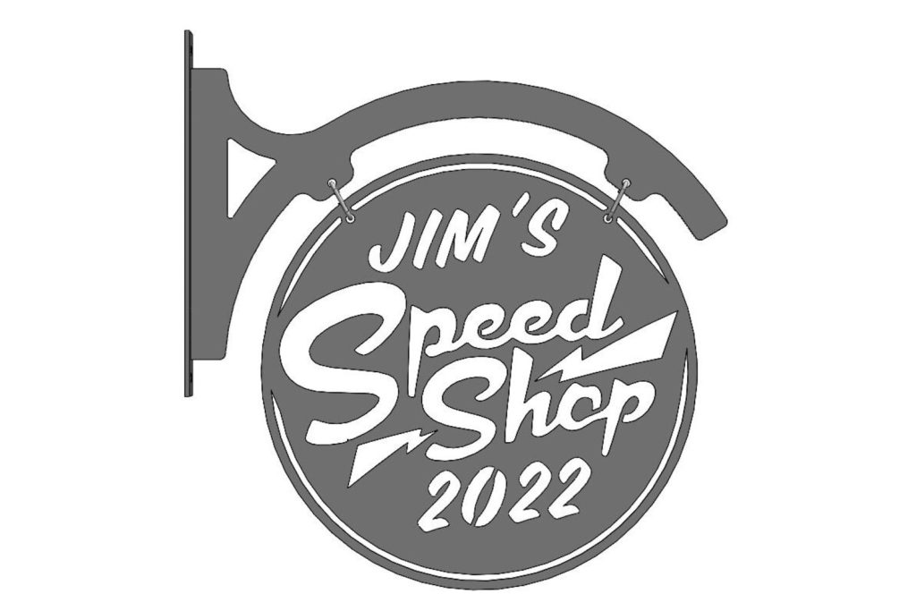 Personalized hanging metal sign for your garage, shop, or mancave.