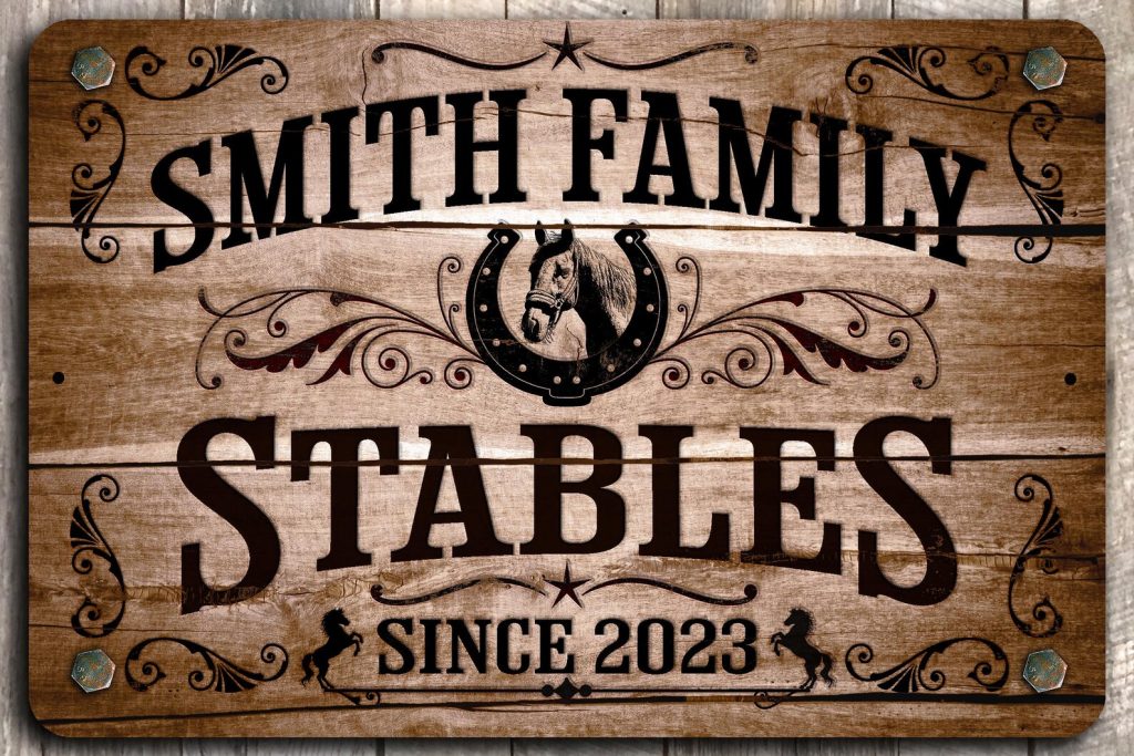 Personalize your Horse Farm or stable area with our personalized vintage design metal sign.
