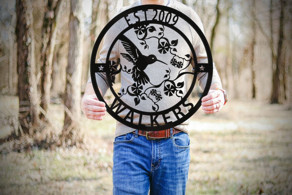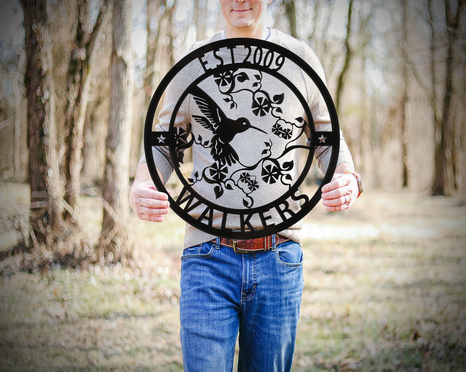 Personalized Hummingbird Wall Art – Custom Metal Sign, Monogram Decor, Unique LED Gift