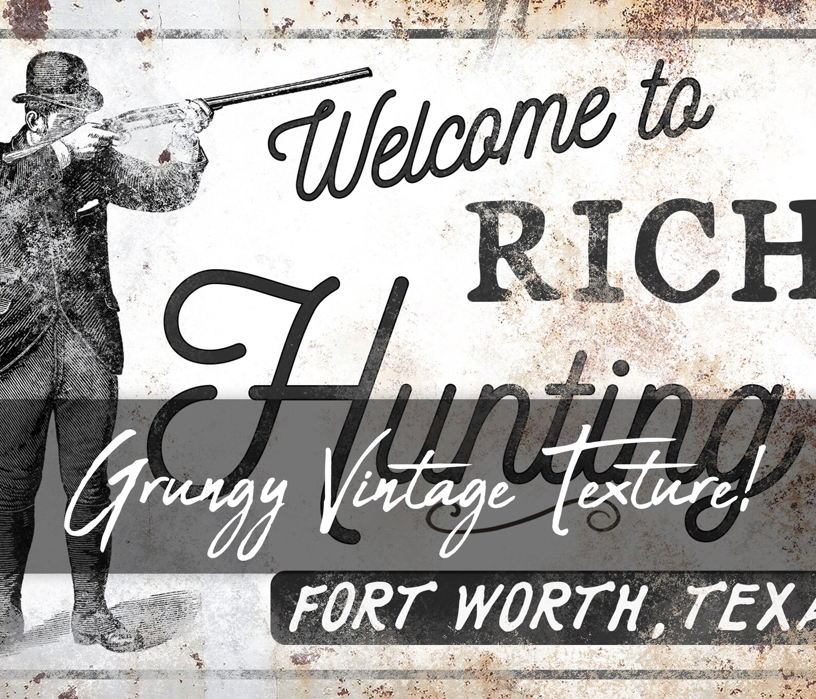 The rustic and weathered textures you see in the artwork will look the same no matter what item you order on. That means metal, wood, and canvas all have the vintage look to them!