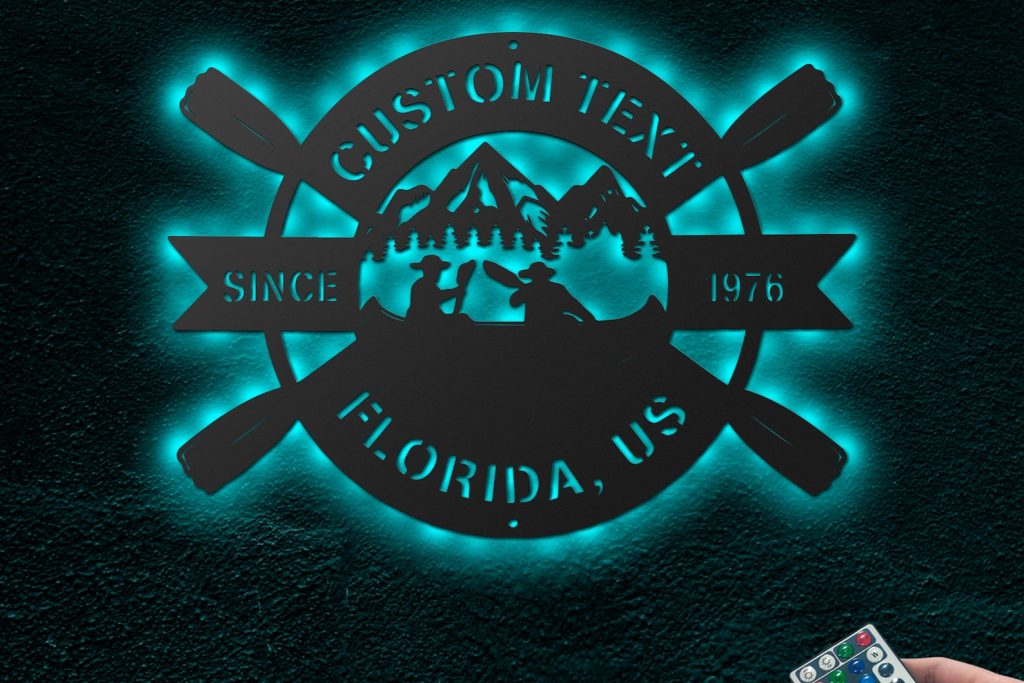Personalized Kayak Couple Metal LED Sign