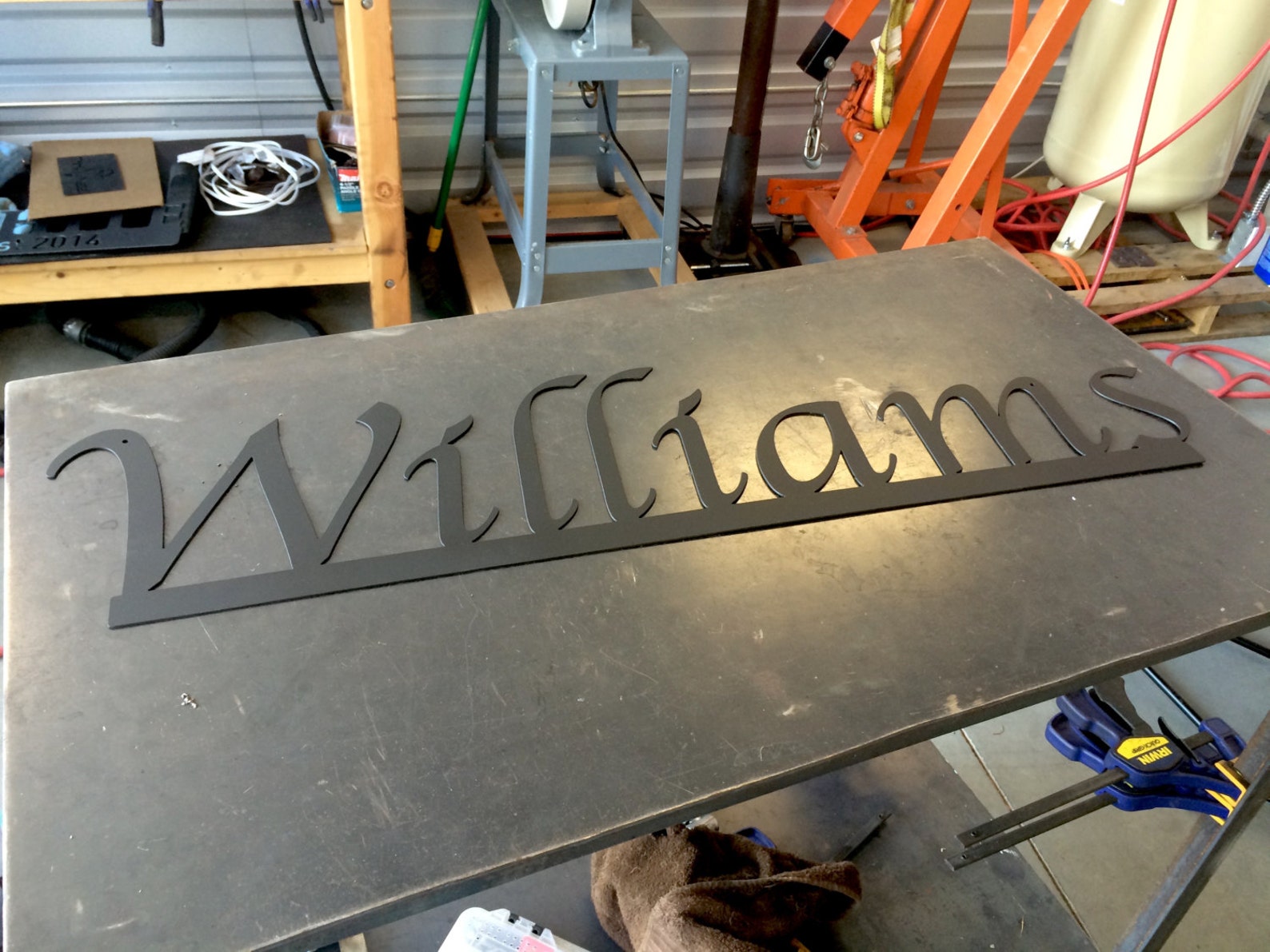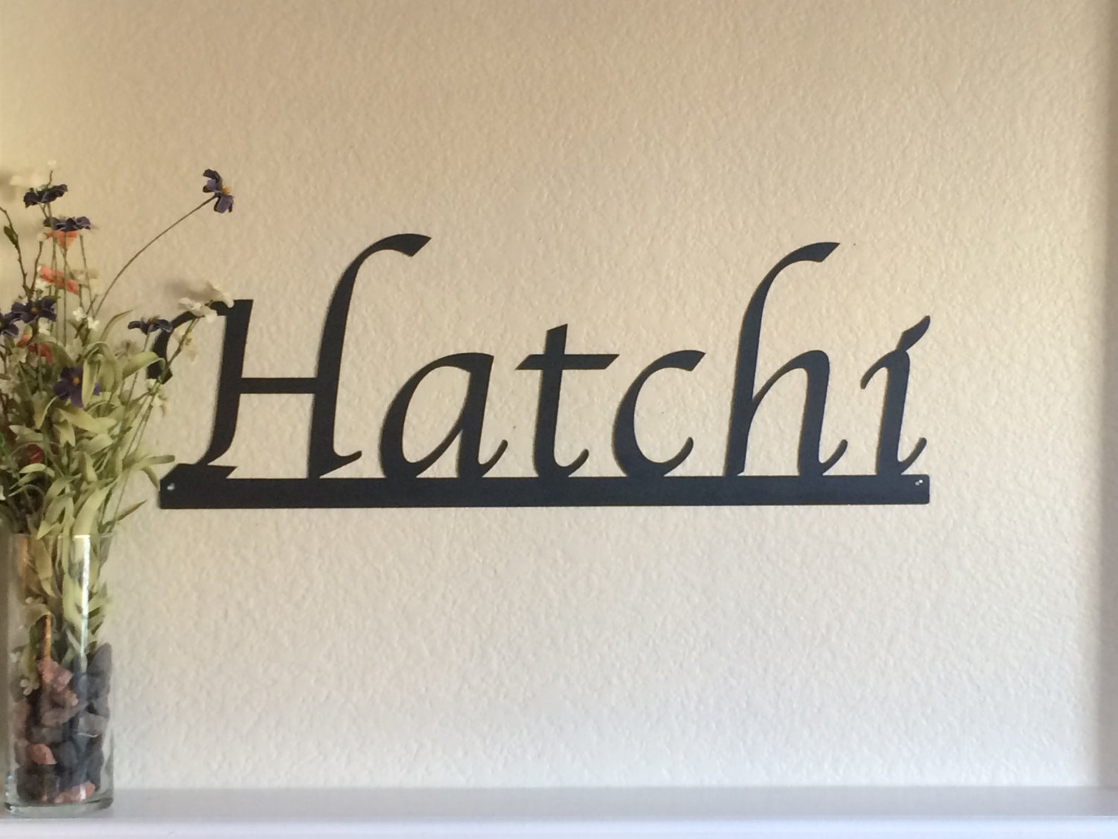 This custom last name sign will make a great addition to any home. We use a plasma CNC table to cut your family name from solid steel. This piece is sure to make a statement! It is perfect for moms, dads, children or anyone who "has everything". We can do any word of your choosing.