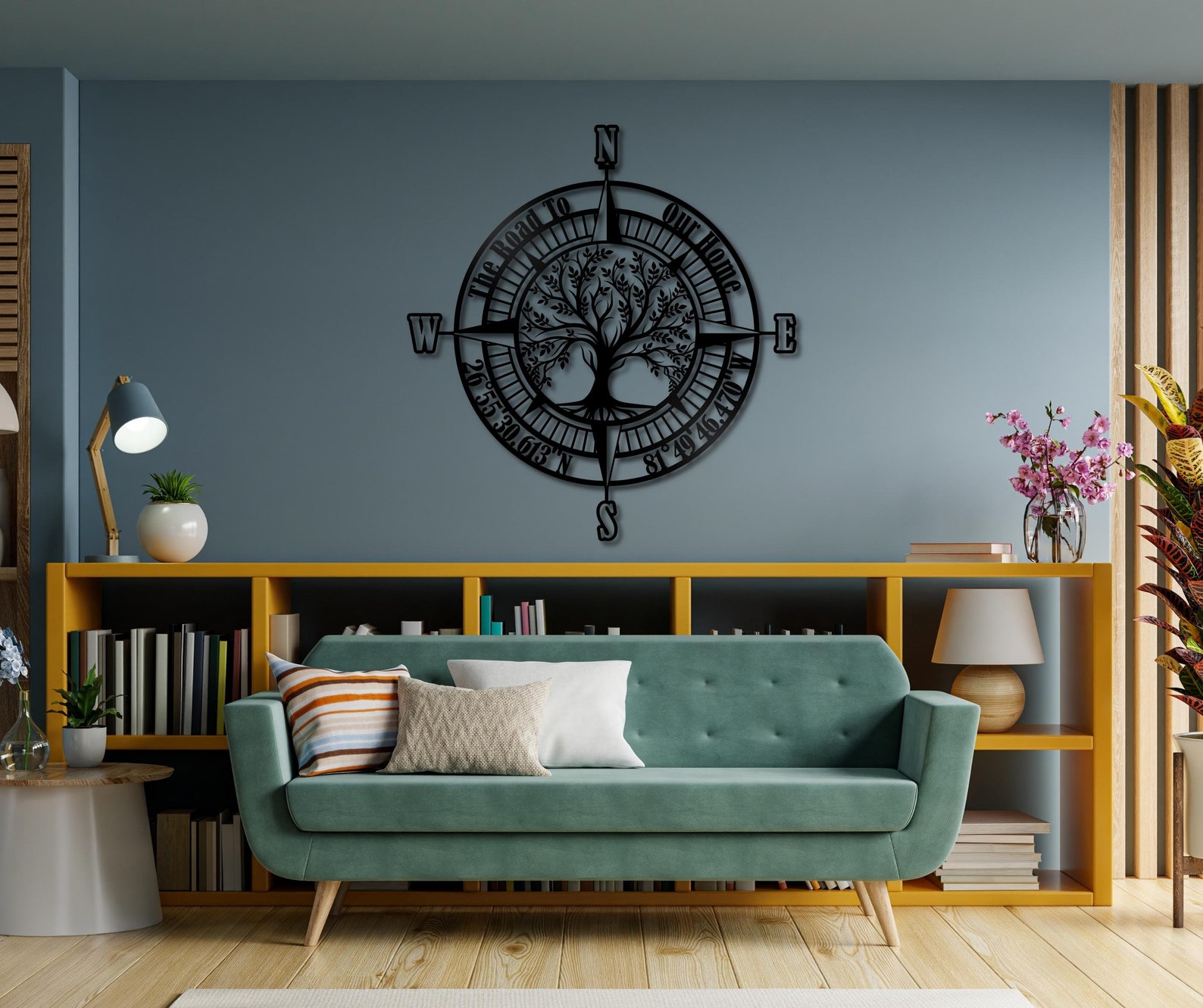 Personalized Compass Metal Wall Decor . Life Tree Themed.