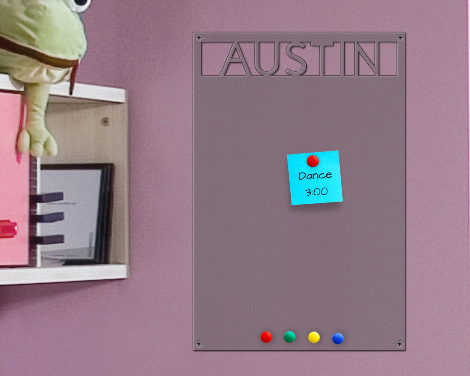Customized to fit your needs whether it be in your home or office. Display photos, reminders, or memories with this modern personalized magnet board. Powder coated so they won9;t rust! Choose from 15 color options.