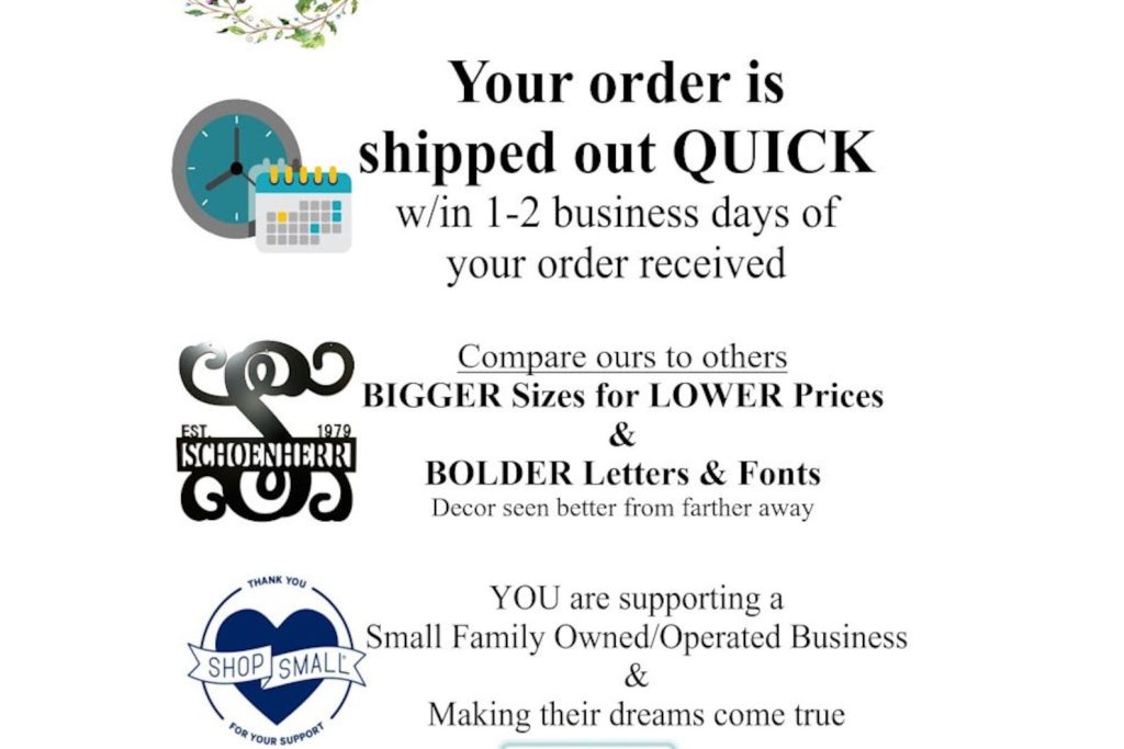 * SHIPPING: Your dcor is cut here in our home and shipped out QUICKLY! Orders ship USPS Priority. By purchasing this item you are releasing us from any delivery delays after it leaves our hands.