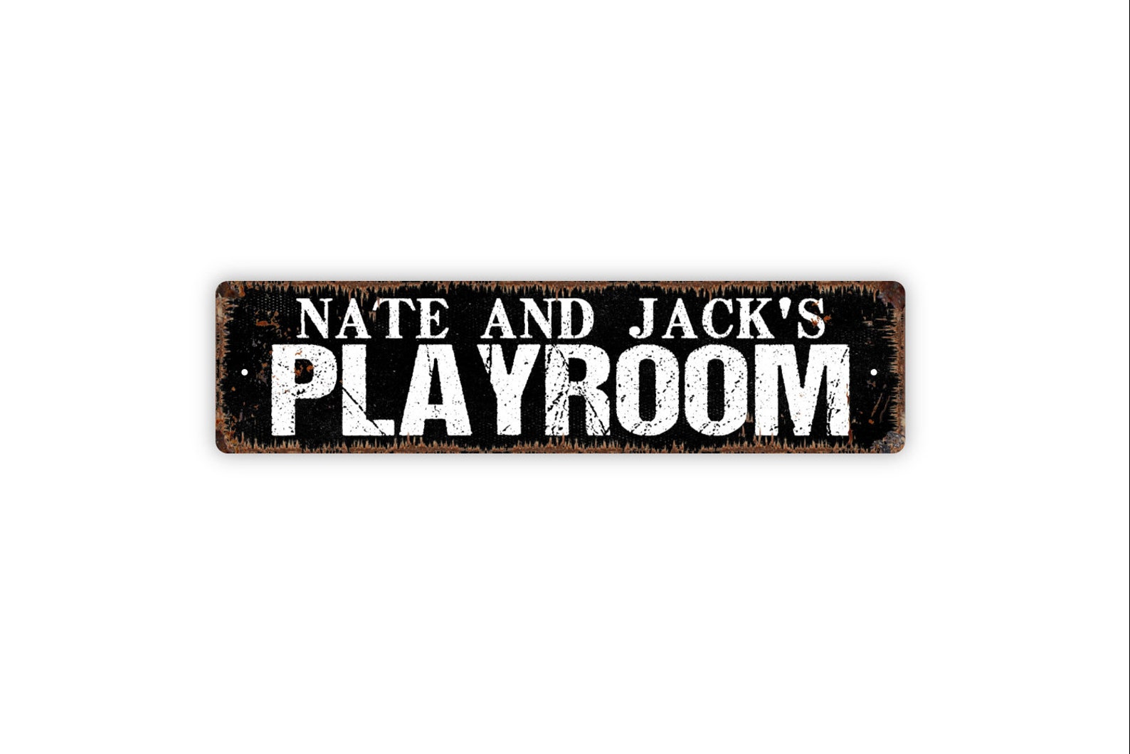 We provide your signs laser cut, personalized, and powder coated. We do not provide the hardware for hanging.