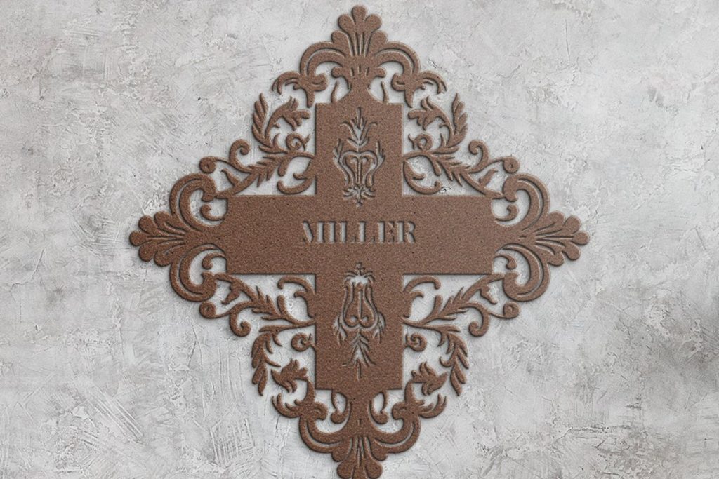 Personalized Family Name Metal Art Cross Sign Initial Monogram Door Hanger Housewarming Moving Gift Wedding Anniversary Christian. DESIGNED BY BCG, DO NO COPY.