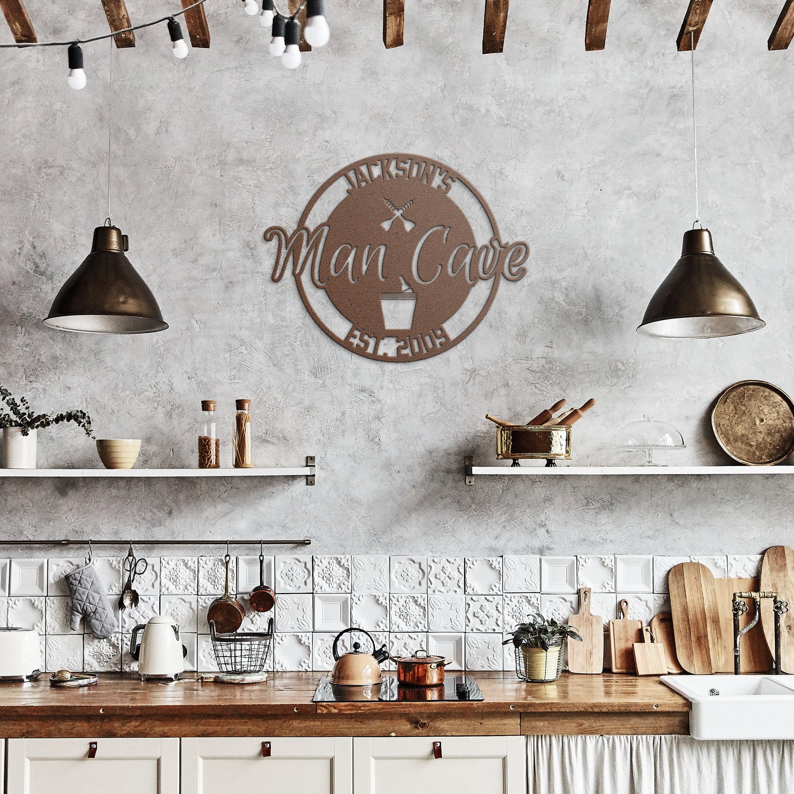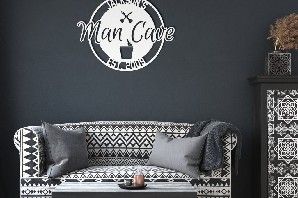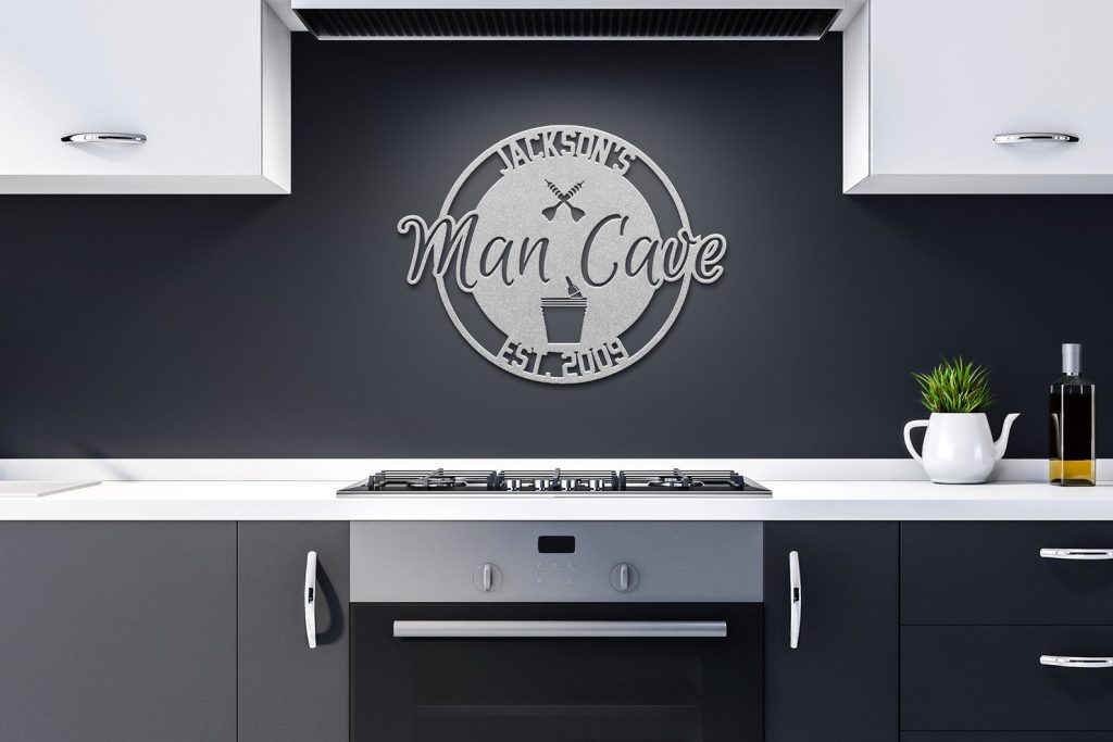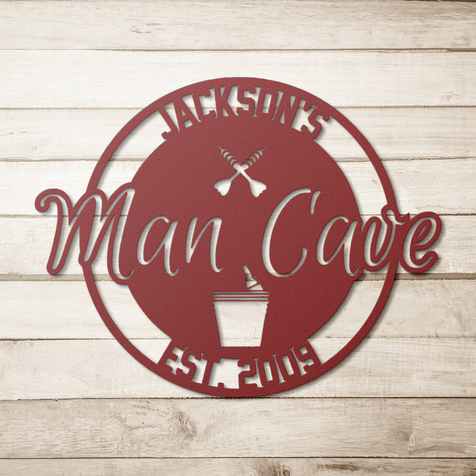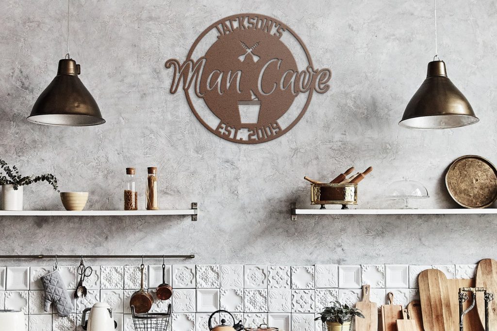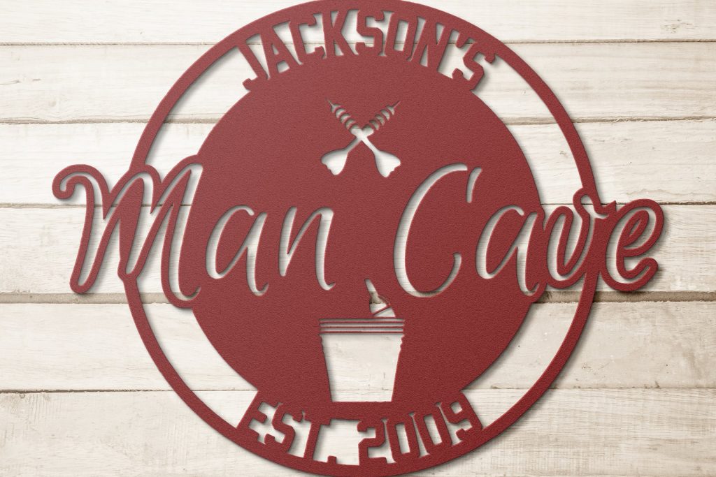 Personalized Metal Man Cave Sign with Beer Bucket & Darts