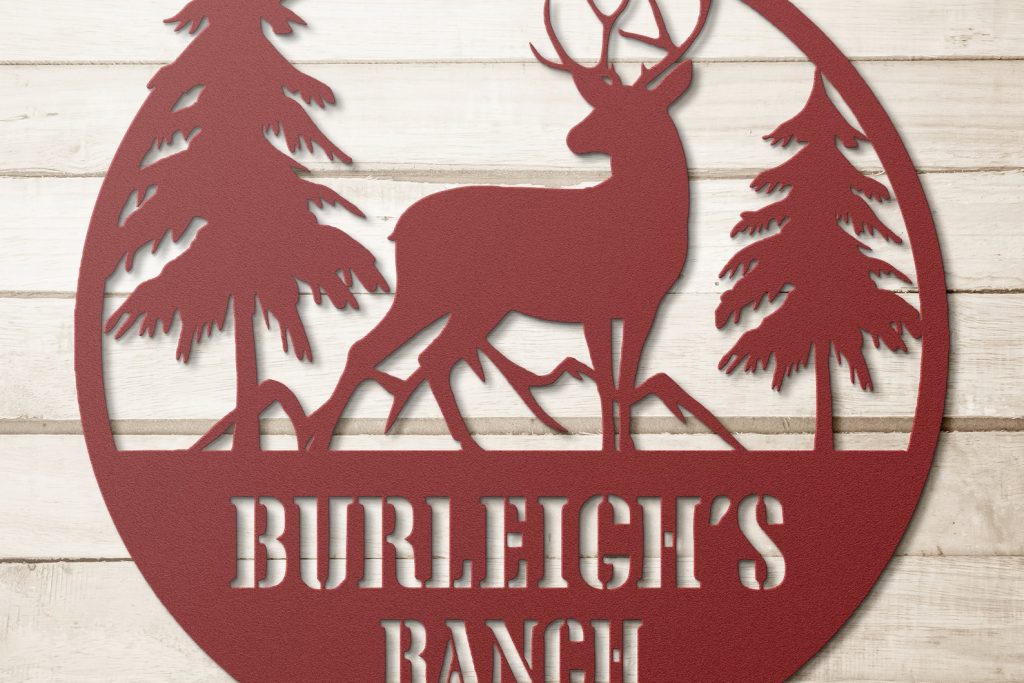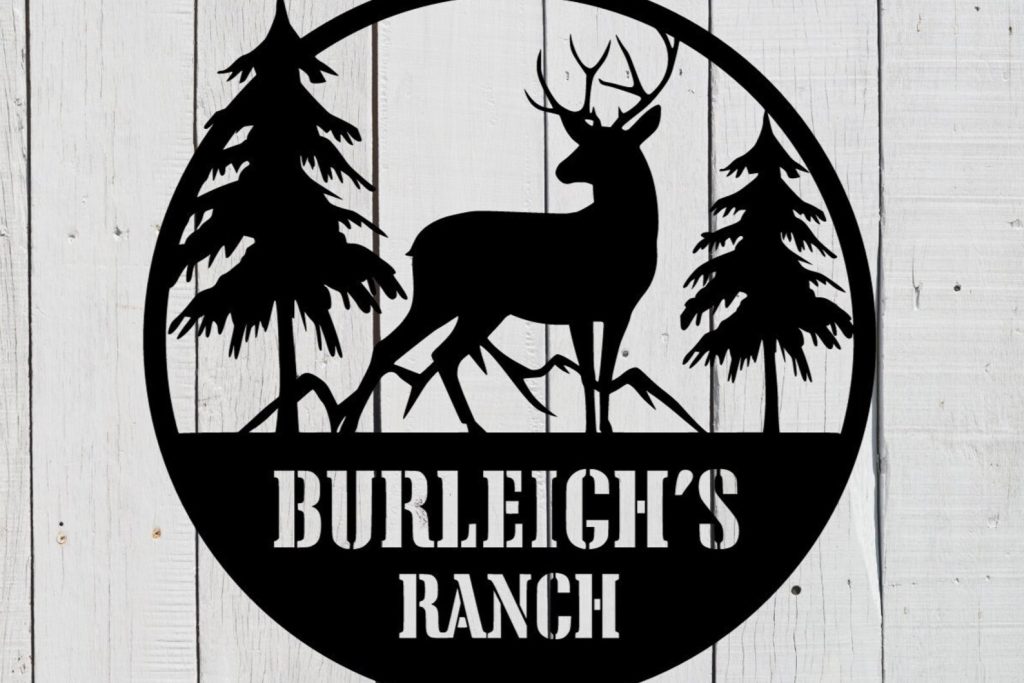 A custom metal hunting ranch sign is a personalized and striking piece of signage designed to capture the essence of the outdoors. Crafted from durable metal, this sign features a picturesque scene with intricately detailed trees, majestic mountains, and an elk, creating a rustic and natural ambiance. The addition of your last name adds a personalized touch, making it uniquely yours. This custom metal sign not only serves as a marker for your hunting ranch but also stands as a symbol of your connection to nature and the pursuit of outdoor adventures. It combines functionality with aesthetic appeal, making it an ideal addition to the entrance of your hunting retreat or cabin, welcoming visitors with a glimpse of the natural beauty and personalized charm that defines your hunting haven.