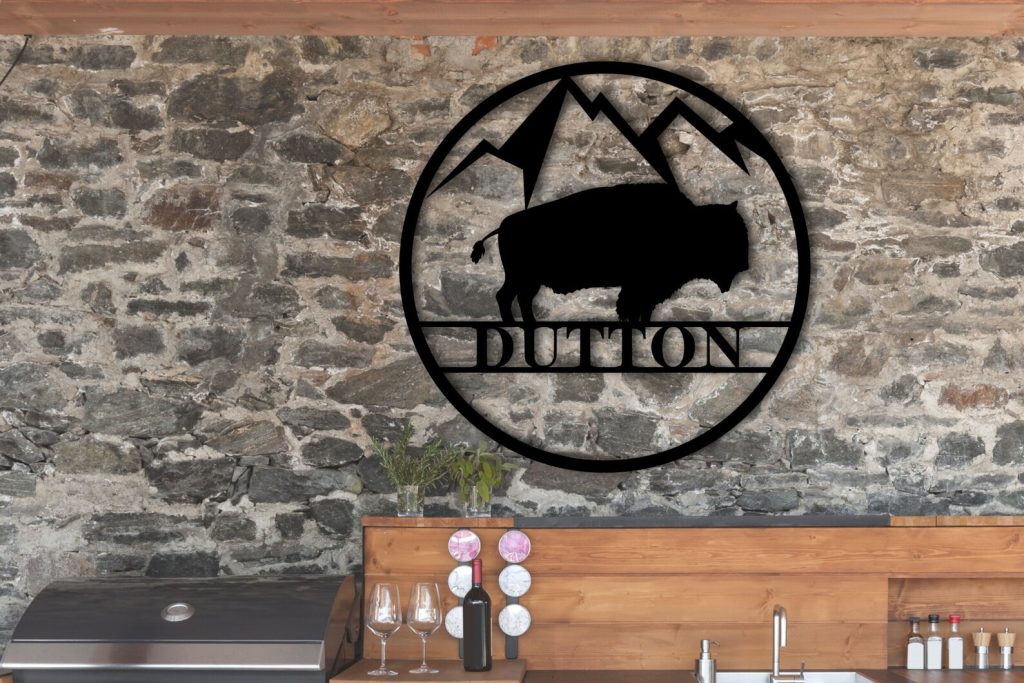 Beautiful Personalized Metal Sign with Mountains and Buffalo !